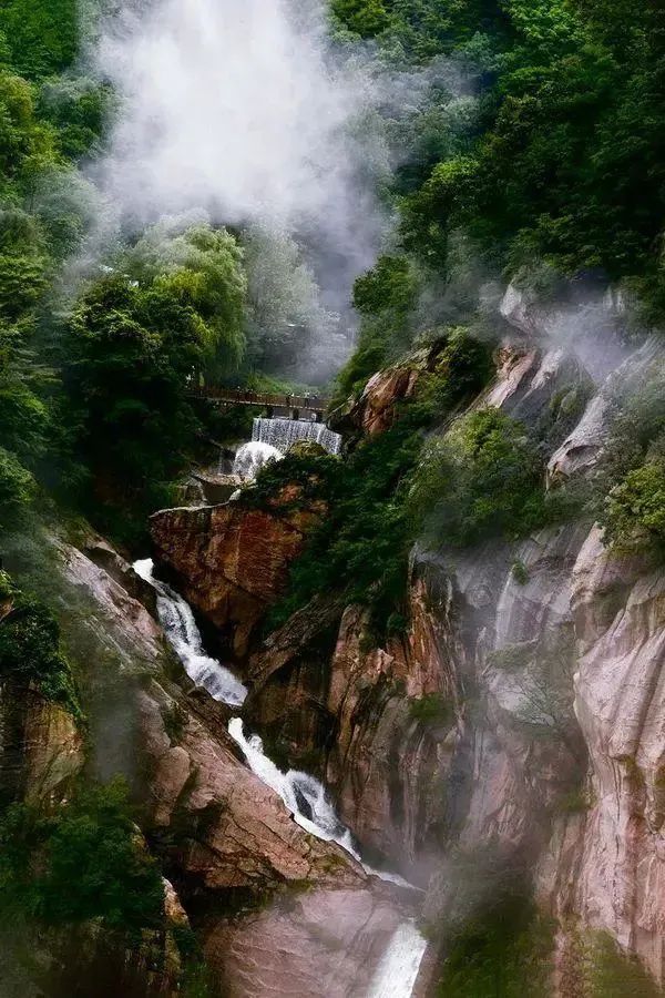 水,是白云山的灵魂。景区内沟谷山间处处溪水淙淙,一山之中伊河、汝河、白河三河共流,分别注入黄河、淮河、长江三大流域,形成了独特的地理景观。千米落差的白河大峡谷内,五步一潭,十步一瀑,九龙瀑布落差高达123米,似银河倒泻,奔腾而下,在丽日的照射下,现出彩虹万道,人走虹移,仿佛置身于梦幻之中。#河南避暑胜地# #白云山旅游# #河南景区排行榜#