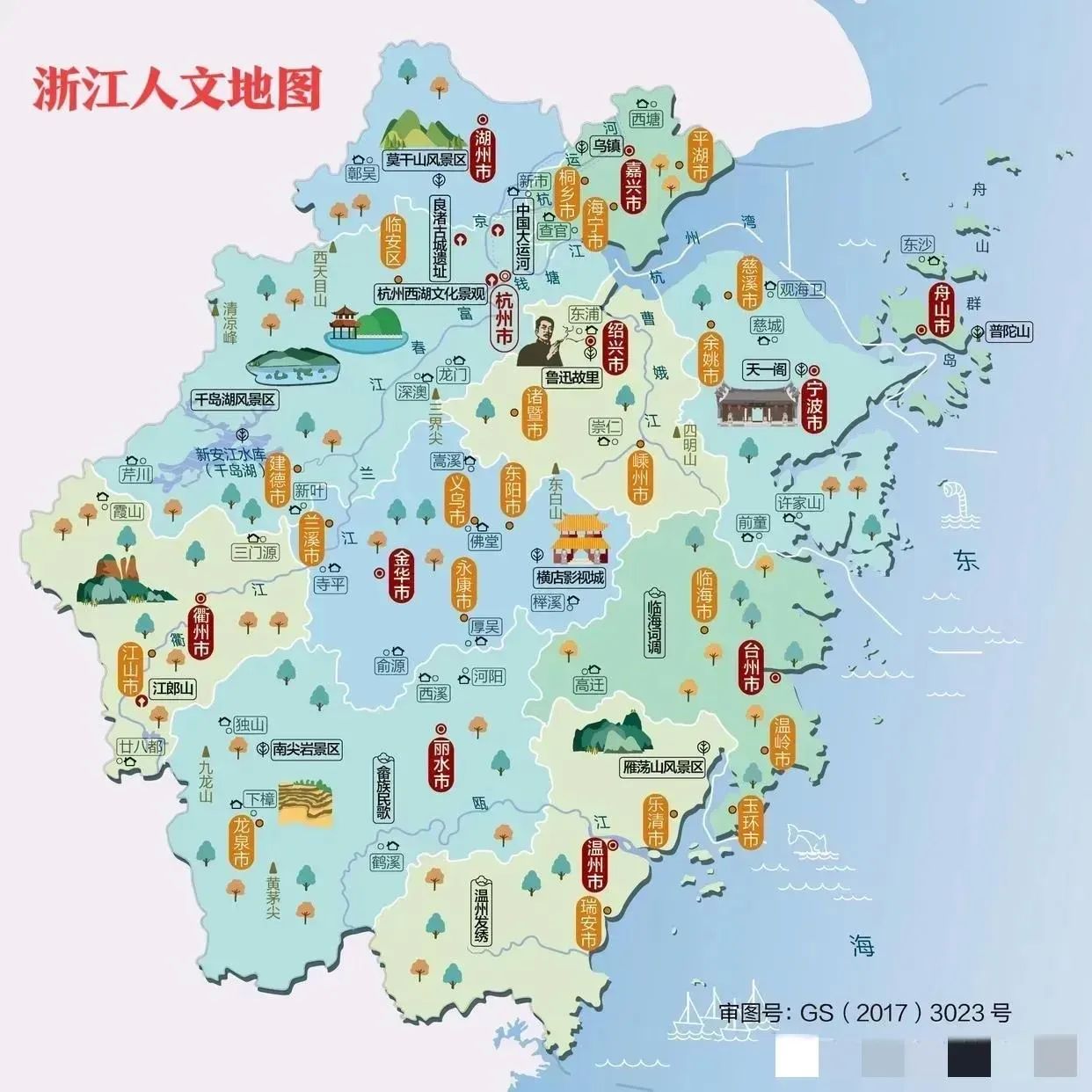 “七山二水一分田”的浙江,是典型的江南水乡、鱼米之乡,辖湖州、嘉兴、杭州、绍兴、宁波、舟山、衢州、金华、台州、丽水、温州11个地级市。境内有雁荡山、普陀山、莫干山、天目山、四明山。水系自北而南主要有苕溪、钱塘江、曹娥江、甬江、灵江、瓯江、飞云江、鳌江八大水系。