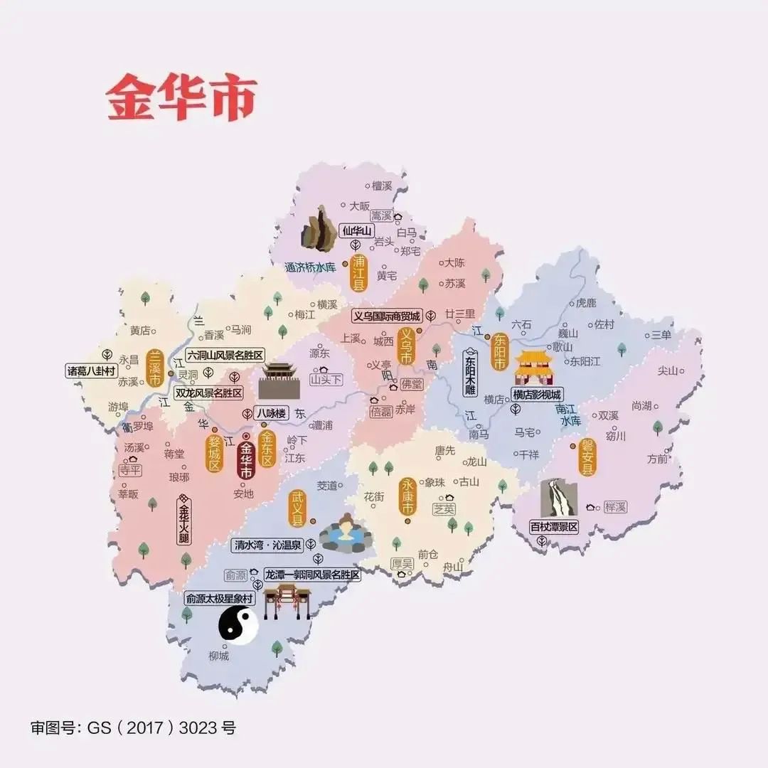 金华市,位于浙江省中部,山清水秀,文风鼎盛,金华府领金华、兰溪、东阳、义乌、永康、武义、浦江、汤溪8县,故有“八婺”之称。