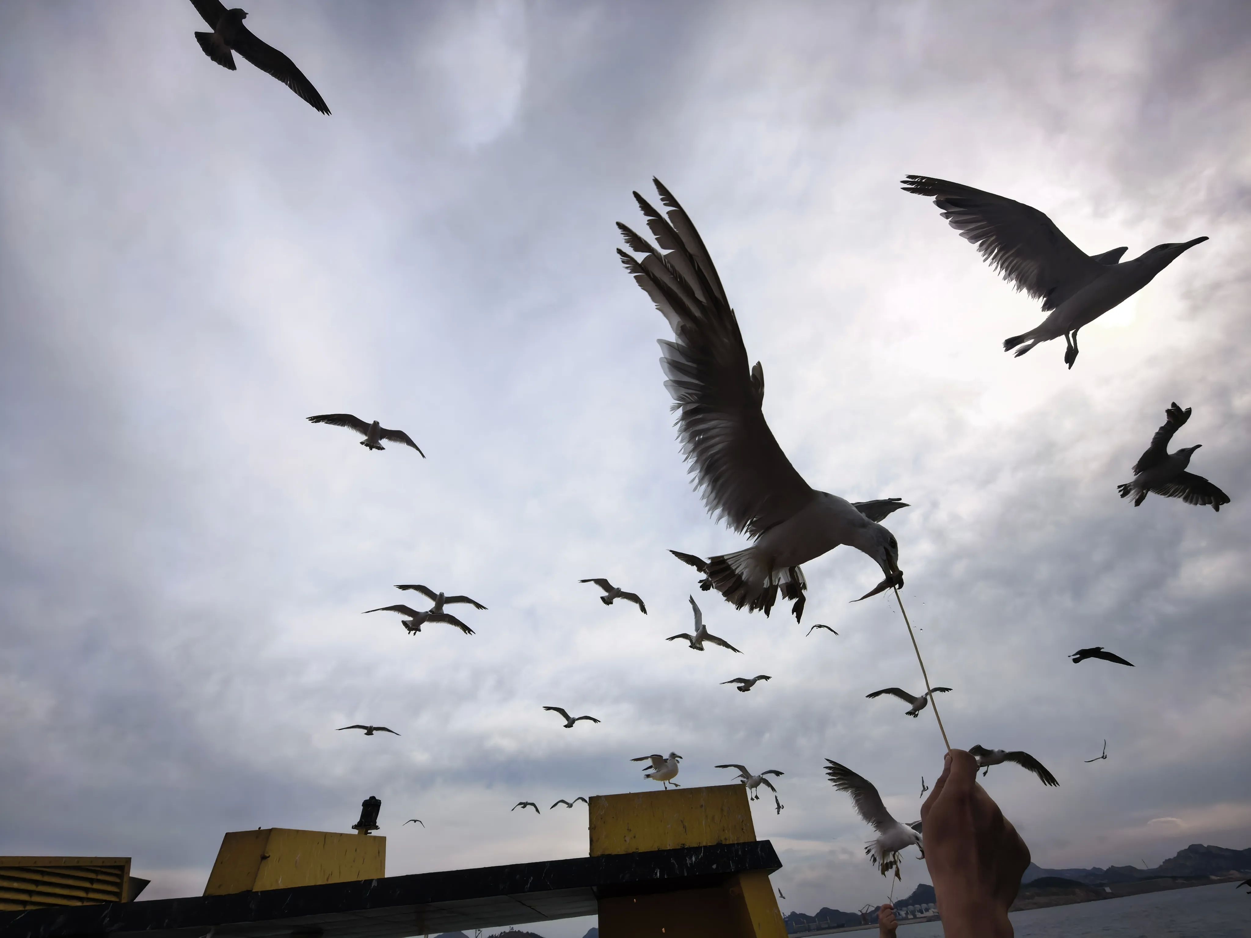 当然【如果只是想喂海鸥,完全可以不坐船也不用买票,从侯船大厅穿过去,到码头东侧的沙滩上喂】