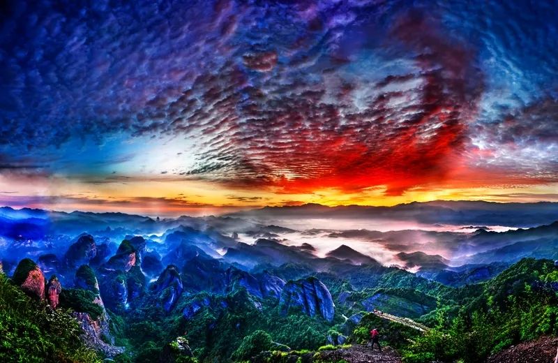- 八角寨看云海:清晨登顶,云海缭绕,如仙境一般。