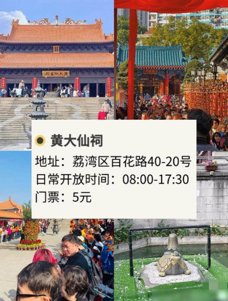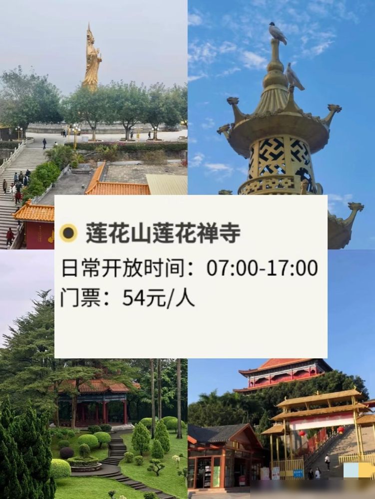 黄大仙祠颜色鲜活得像幅画,听说是香港啬色园分灵过来的,我邻居阿姨总说这儿求健康灵验;能仁寺在白云山,爬完山去歇脚,山风裹着香火味,比喝杯茶还解乏。莲花禅寺的望海观音像,据说是世界最高的箔金观音,我表舅跑船二十年,每年开渔前必来这儿,他说“看着观音面朝大海,心里就有底”。