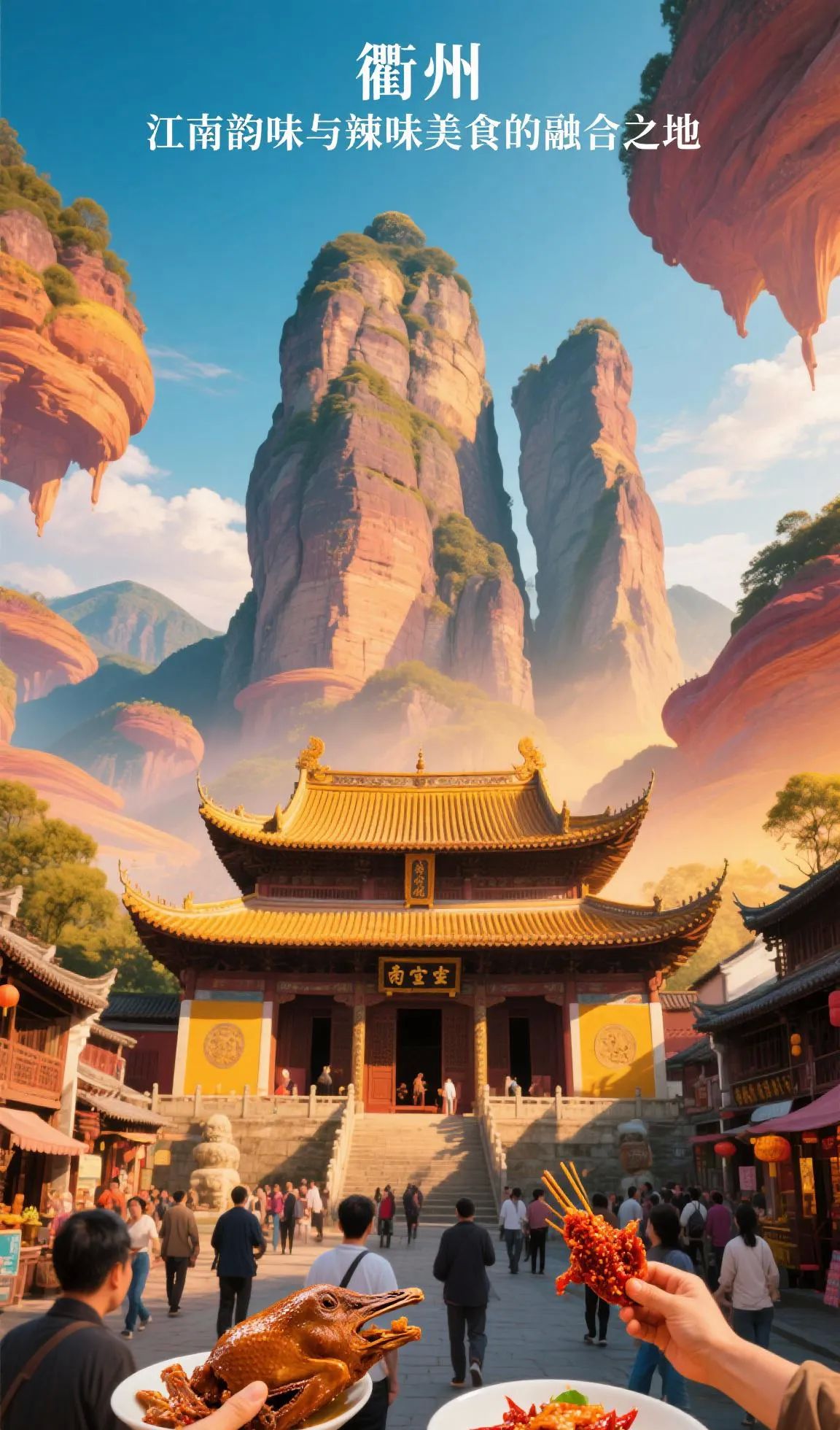 - **特色**:南孔圣地、江郎山丹霞地貌,融合江南韵味与辣味美食(如鸭头)。
