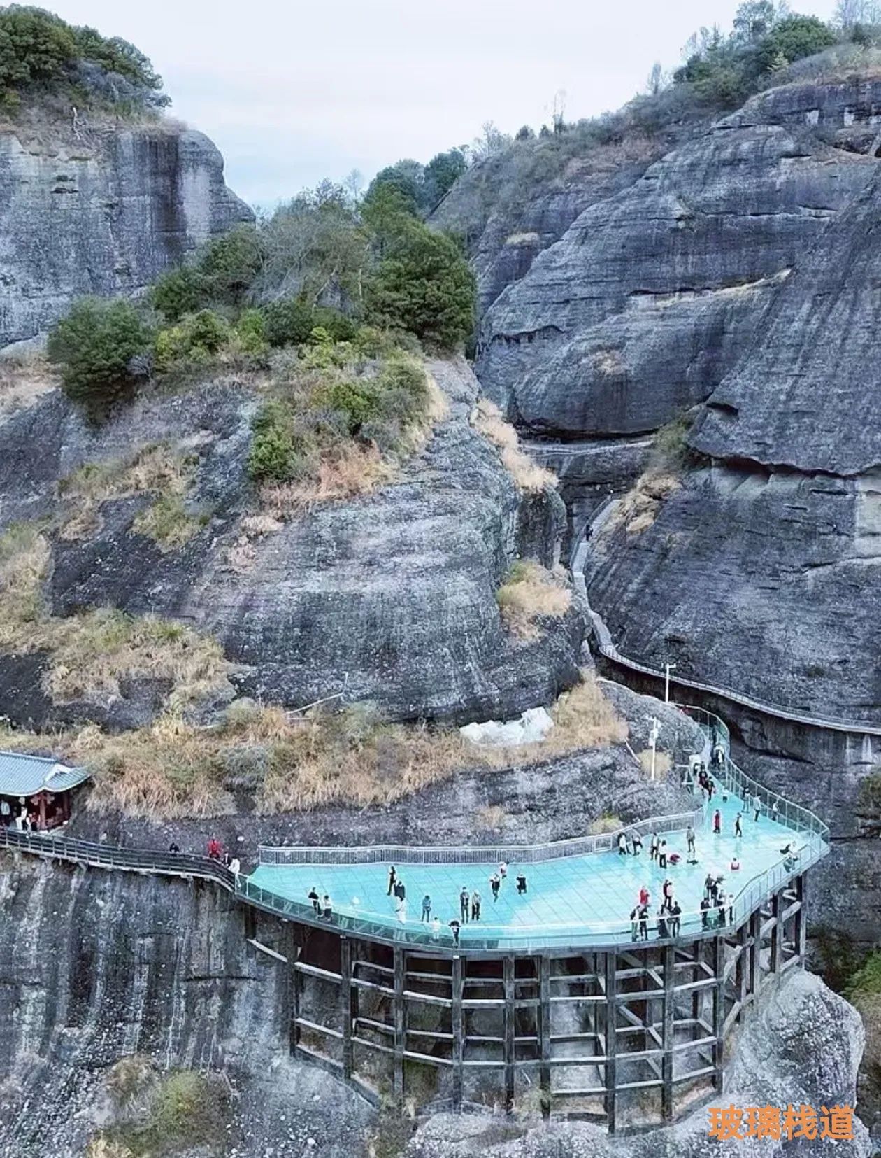 3、玻璃栈道,悬挂于悬崖峭壁,行走栈道上,仿佛漫步云端,既紧张又刺激。大胆向前走,无限的惊喜,美丽的风景如同天空之镜般,横跨于蔚为壮观的山谷之间。