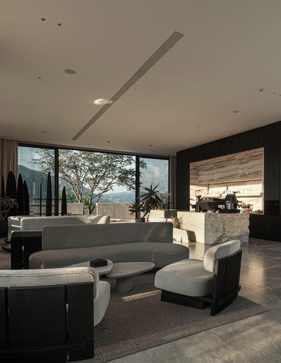 蕞惊喜的是设计细节:每个房间都有独 立阳台,早上能看到不同角度的山景;公共区域的落地窗外就是竹林,开会时看两眼绿色都觉得解压。住到第三天,大家一致决定:下次部门活动还来这!