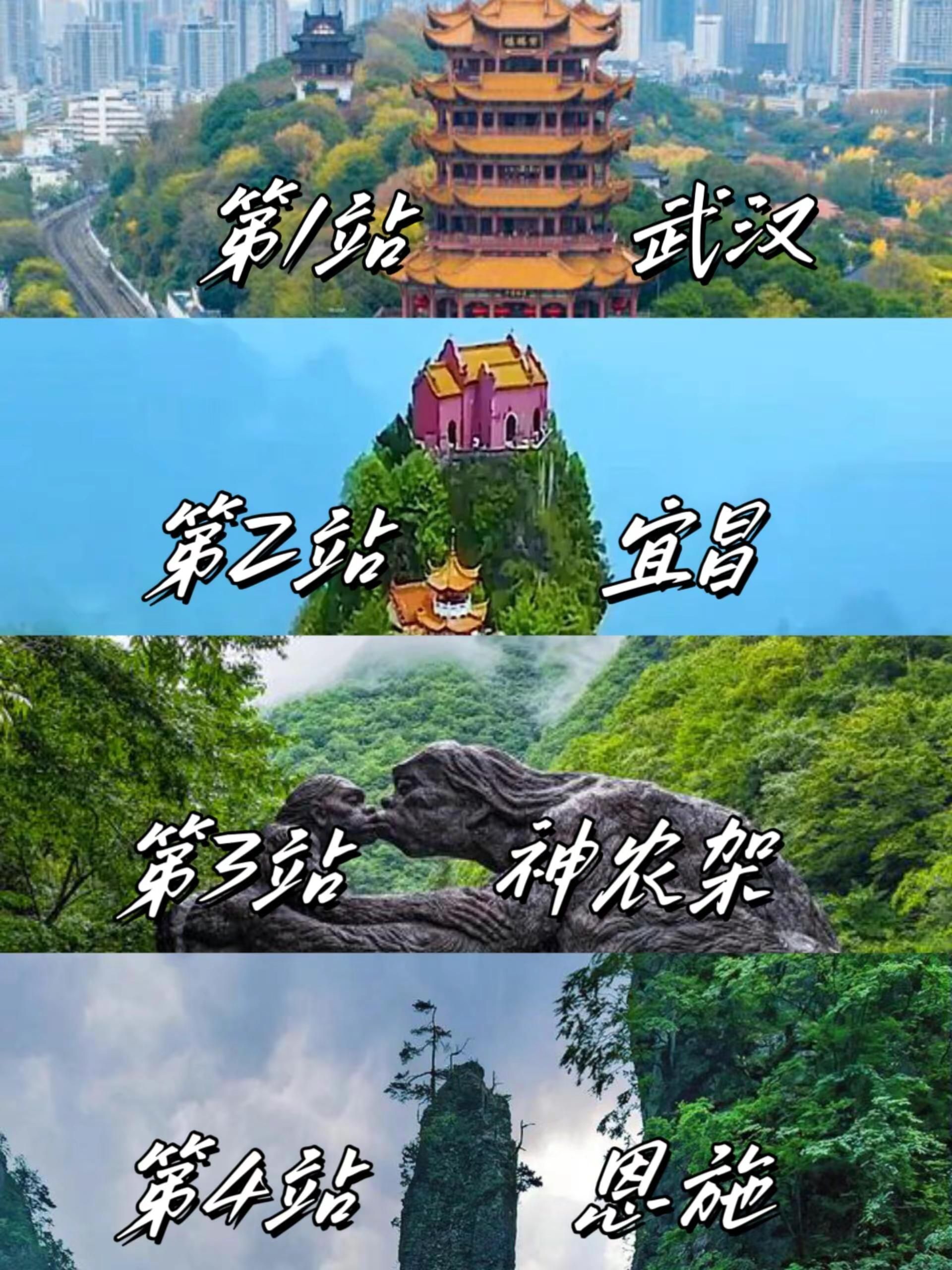 终于有人把湖北旅游说清楚了。[害羞R]宝子们,这次给大家带来一条湖北旅游的宝藏路线,一次玩遍武汉、宜昌、神农架、恩施,主打一个包罗重点,带老人小孩也能轻松驾驭!景点种草:黄鹤楼:黄鹤楼是江南三大名楼之一,位于武昌区蛇山之巅,濒临万里长江。始建于三国吴黄武二年(223年),历代屡加重修,现存建筑以清代同治楼为原型设计,重建于1985年。因唐代诗人崔颢登楼所题《黄鹤楼》一诗而名扬四海。历史韵味十足,夜上黄鹤楼更加震撼,打卡拍照很出大片。宜昌清江画廊:国家5A级旅游景区,以清江流域的山水风光和土家文化为核心,被誉为“八百里清江美如画,三百里画廊在长阳”。 核心景点融合了自然奇观与巴人历史遗迹,兼具地质公园、森林公园和民族文化展示功能。神农架:拥有神农顶(5A级景区)、大九湖湿地(亚高山泥炭藓沼泽)、神农坛等核心景观,四季景致各异,原始森林的神秘感浓郁,神农顶是华中第yi峰,大九湖宛如仙境,很适合全家一起感受大自然。恩施大峡谷:国家5A级旅游景区、国家地质公园,拥有“世界地质奇观-东方科罗拉多”之美誉。景区森林覆盖率高达90%以上,生态环境得天独厚,自然风光原始古朴,如诗如画,万米绝壁画廊、千丈飞瀑流芳、百座独峰矗立、十里深壑幽长,奇山、异水、怪洞、珍禽数不胜数,凡天下奇景无不包容。ㅤ经典7日行程规划第ay1:各地 - 武汉 - 黄鹤楼 -粮道街\ 万松园(吃美食) - 住武汉市区Day2:湖北省博物馆 - 东湖绿道 - 夜游汉口江滩灯光秀十知音号游轮 - 乘高铁至宜昌Day3:宜昌三峡人家 - 清江画廊-附近民宿Day4:神农架神农顶- 大九湖-天生桥瀑布栈道 - 住附近民宿Day5:燕子垭 - 官门山- 博物馆 - 民俗文化村 - 住民俗村镇Day6:恩施屏山峡谷 - 大峡谷-土司城 - 住坪阡古镇Day7:红石林- 蝴蝶岩 - 梭布垭-地心谷 - 返程ㅤ小tips:1. 恩施景点分散(建议屏山峡局+大峡谷分两天游览)。2.假期人多,各景点门票和住宿一定要提前预订。最优季节5-10月。3.7-8 月需带外套,恩施和神农架部分路段弯道多,自驾要谨慎,带老人小孩也可以选择包车或者定制游,更省心。4. 张关合渣按人头配菜、炕土豆。地方特色美食,记得品尝,注意卫生,别吃坏肚子。祝大家都能拥有一个美好的湖北之旅!#旅游好地方 #旅游风景区 #旅游景点 #旅游胜地 #湖北旅游
