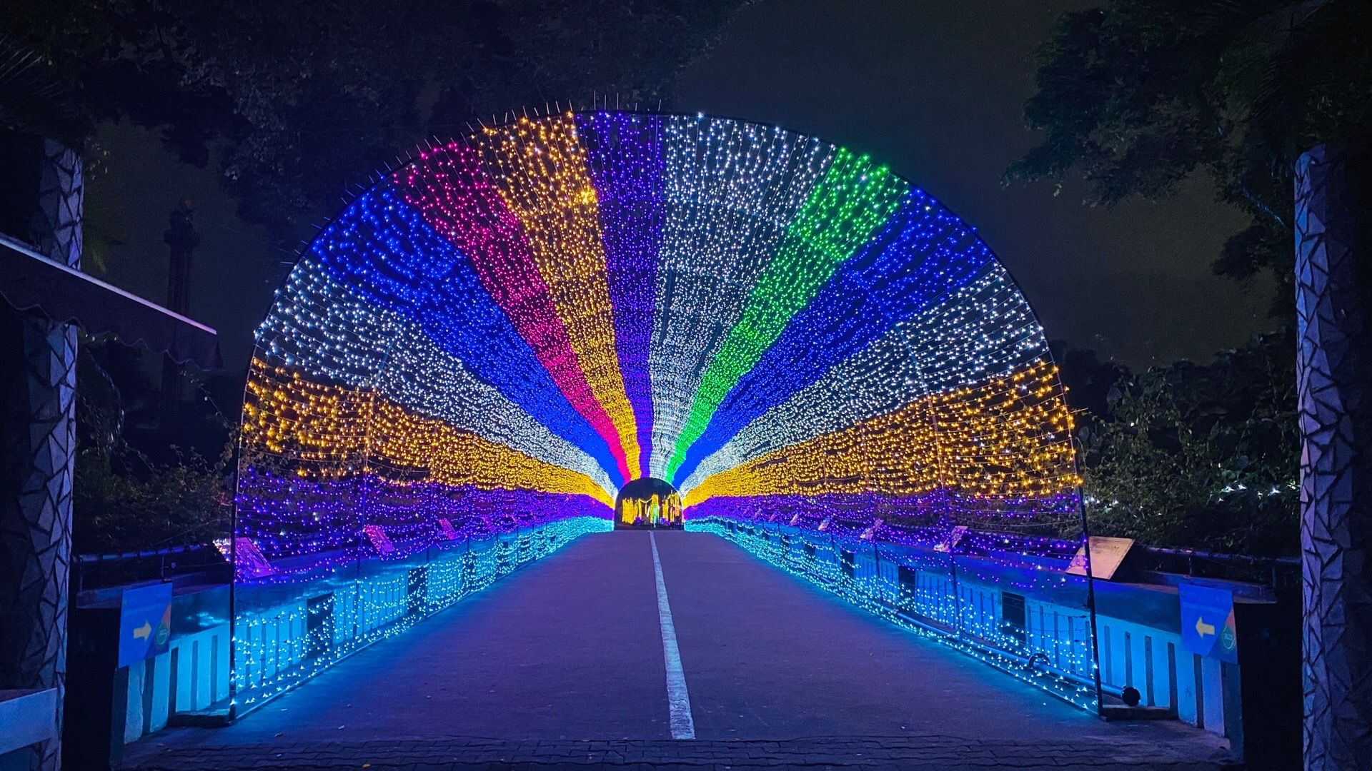 五颜六色的彩灯装饰着圆拱桥,仿佛进入了魔幻的童话世界,这就是王子和公主通完城堡的幸福通道。赶紧约上你的另一半踏上浪漫之旅吧...