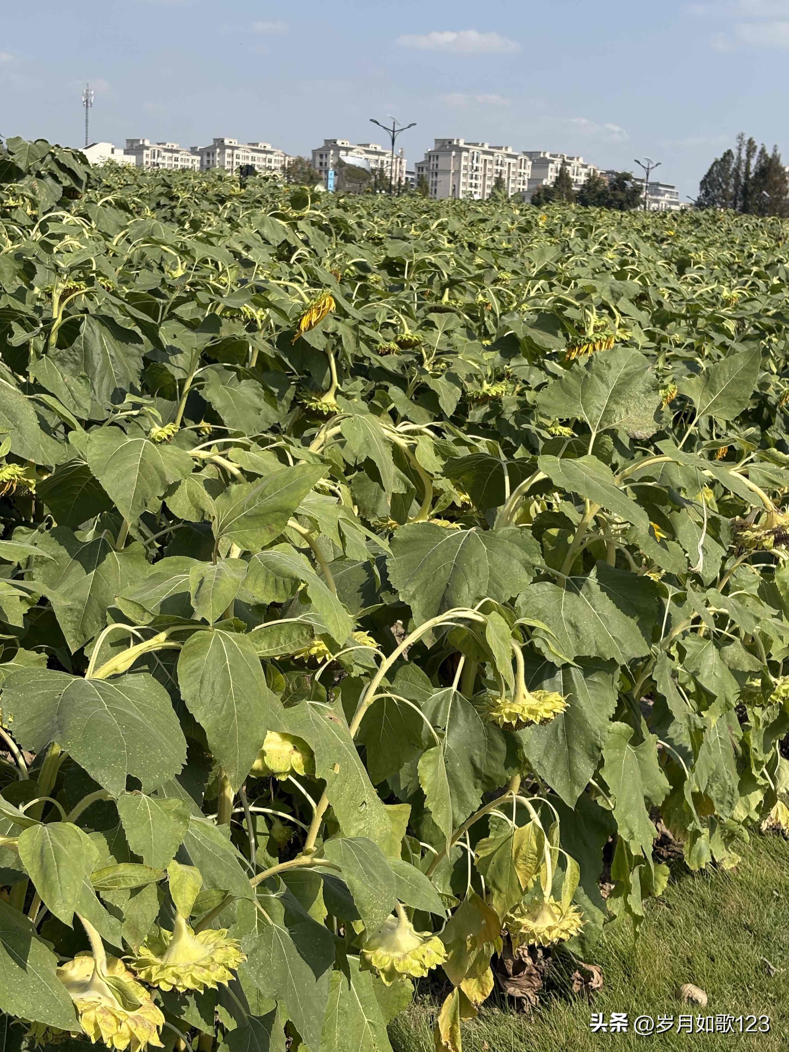 花海中还有大片向日葵,成熟的花盘低下了头。我尝了一颗向日葵瓜子,已经饱满可食。