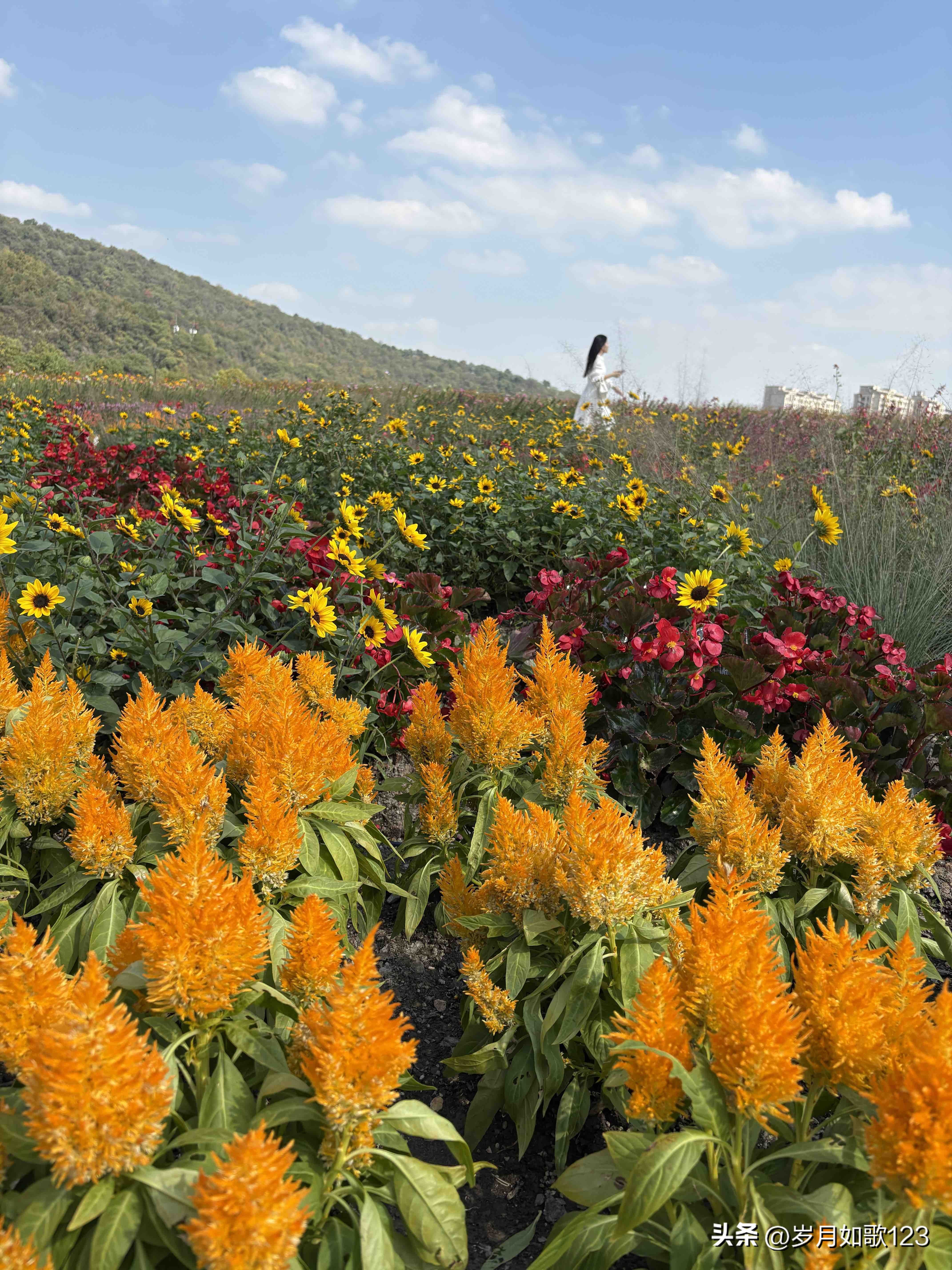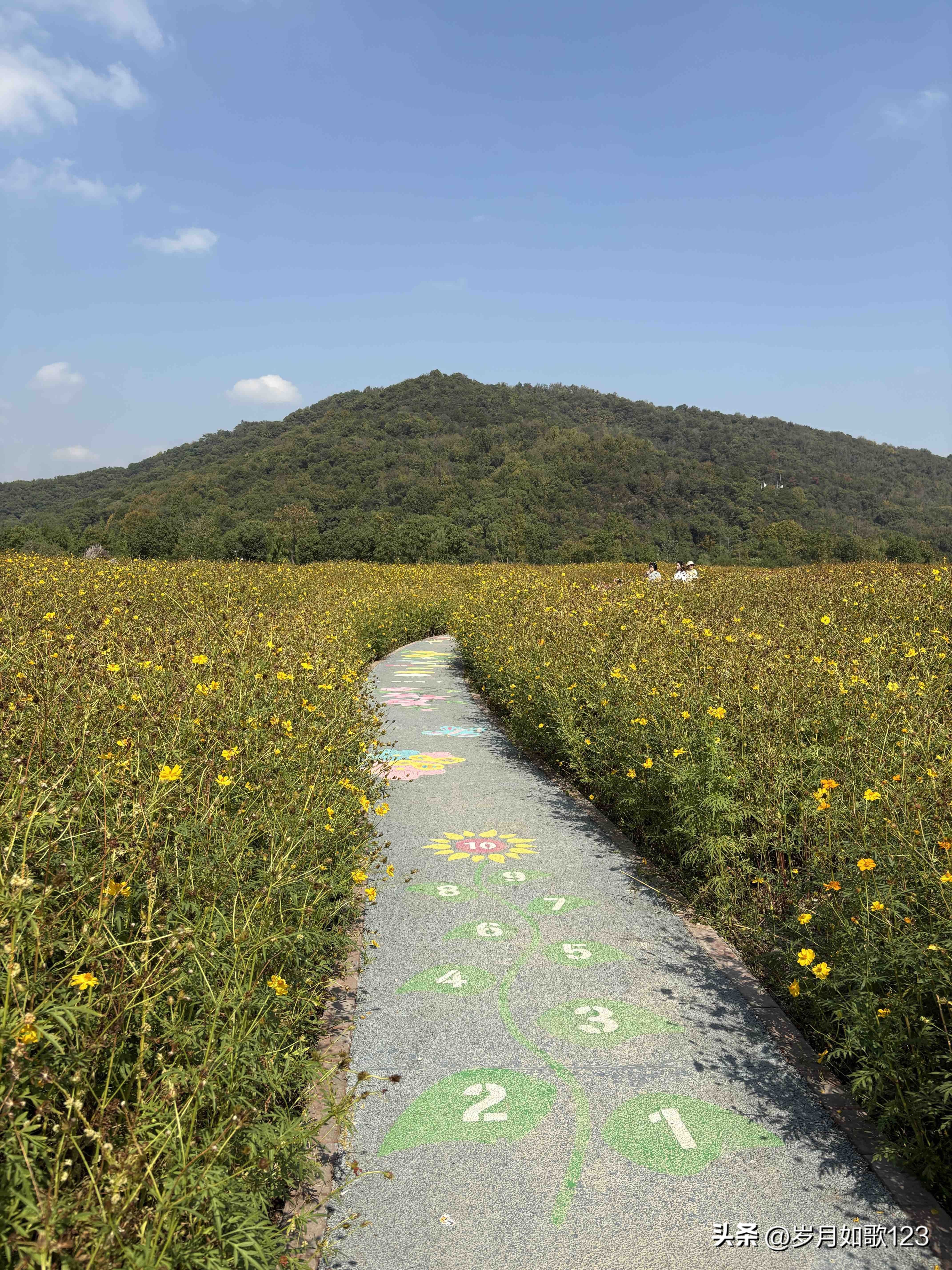初到杭州时,我本没打算游览景点,毕竟已入秋季,我以为花儿都已凋谢。没想到,清晨醒来翻看手机,偶然刷到杭州铜鉴湖花海的视频,无人机视角下,那景色美极了,各色鲜花一望无际,铺满大地。