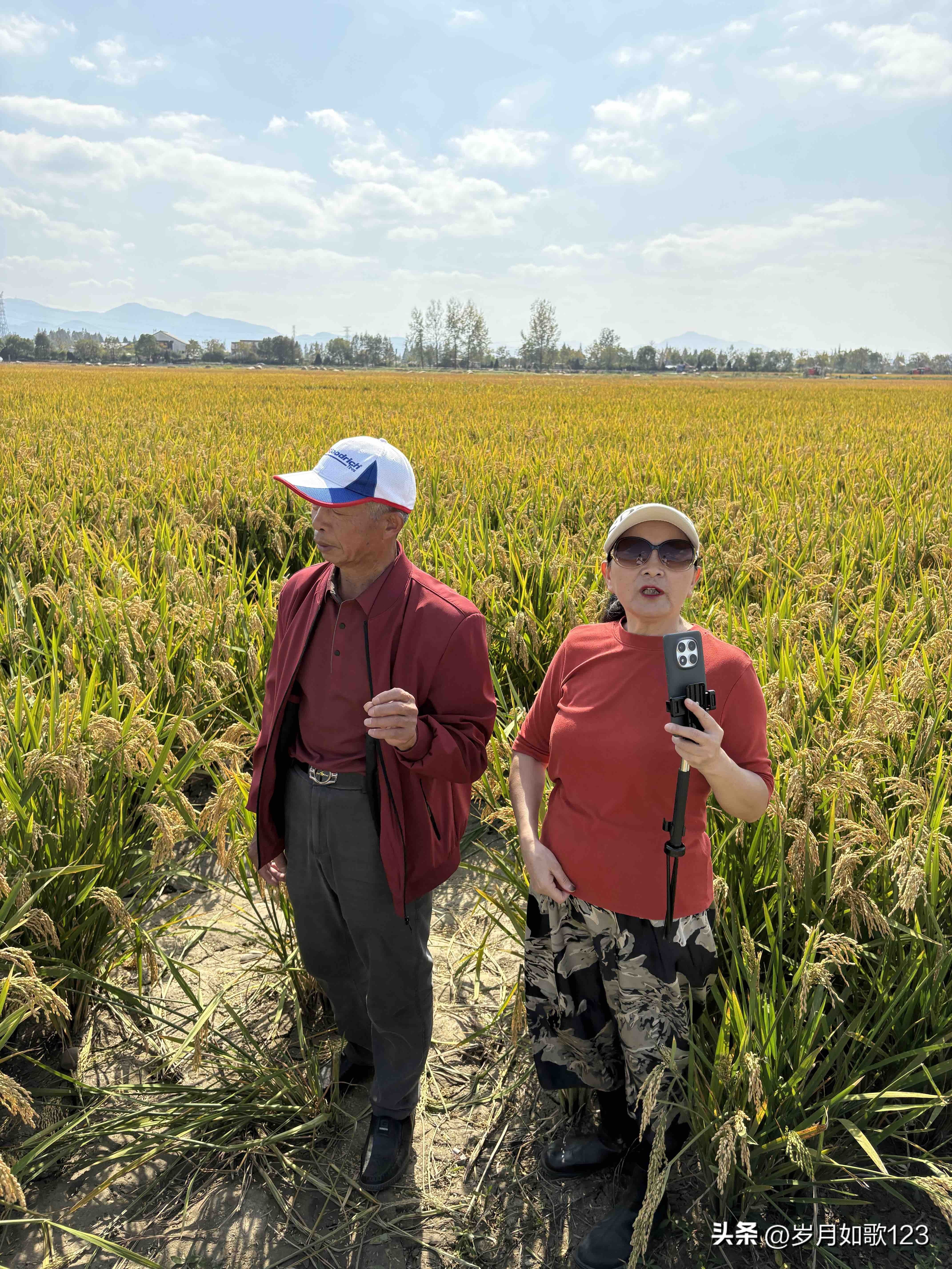 我还看到大片稻田,稻子已然成熟,沉甸甸地弯下了腰。风吹过来,我与一对杭州夫妻友好交谈,我为他俩在稻田里找不同角度拍照,他们也为我拍了好几张美照。