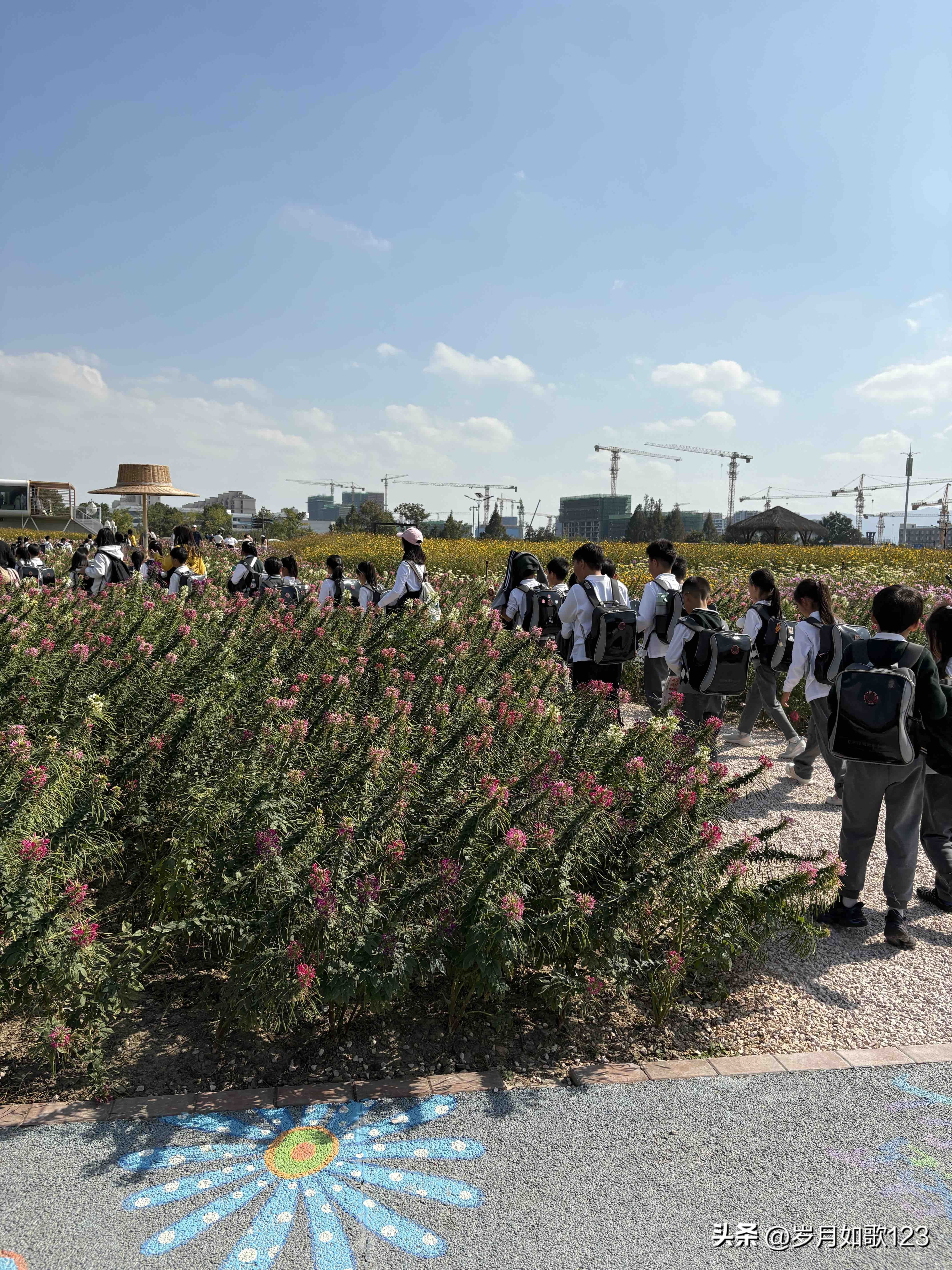 还有小学生在老师的带领下来参观,他们稚嫩的脸蛋在鲜花的映衬下,格外好看。