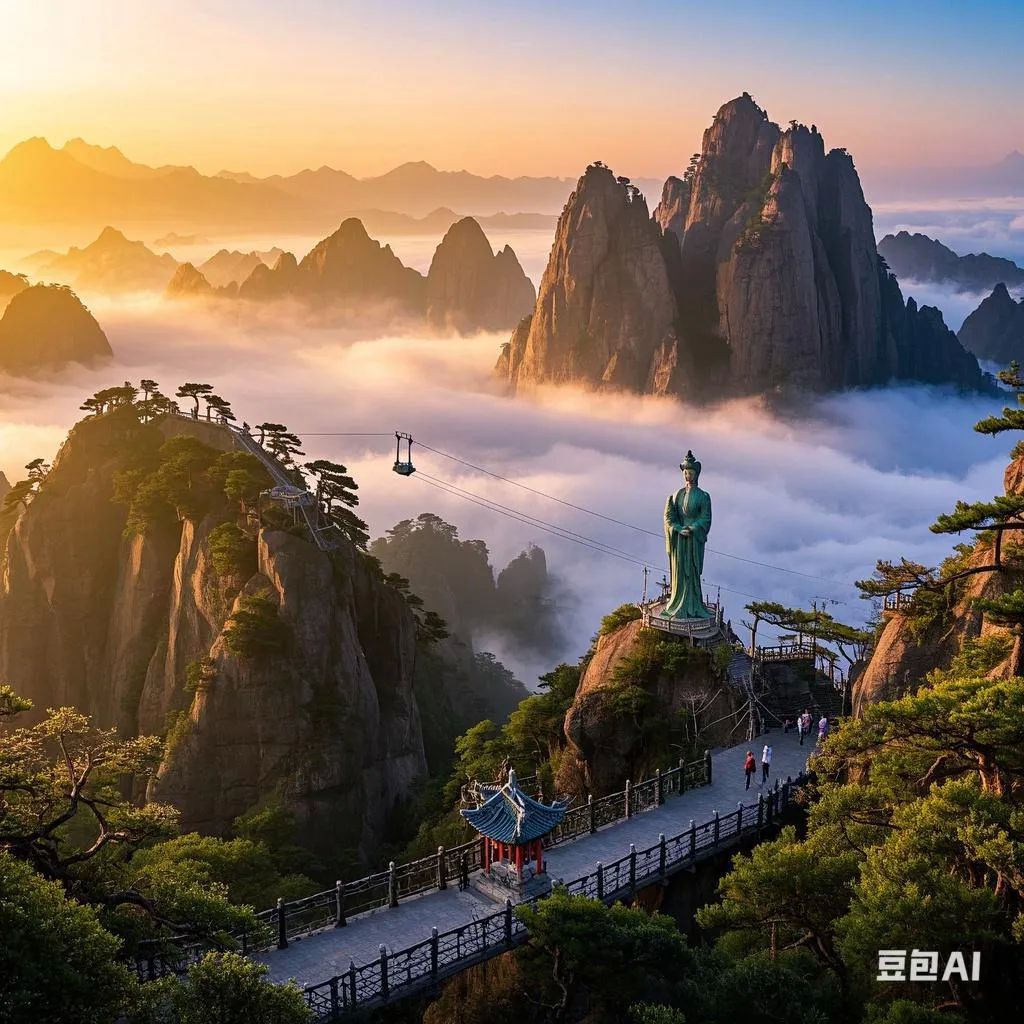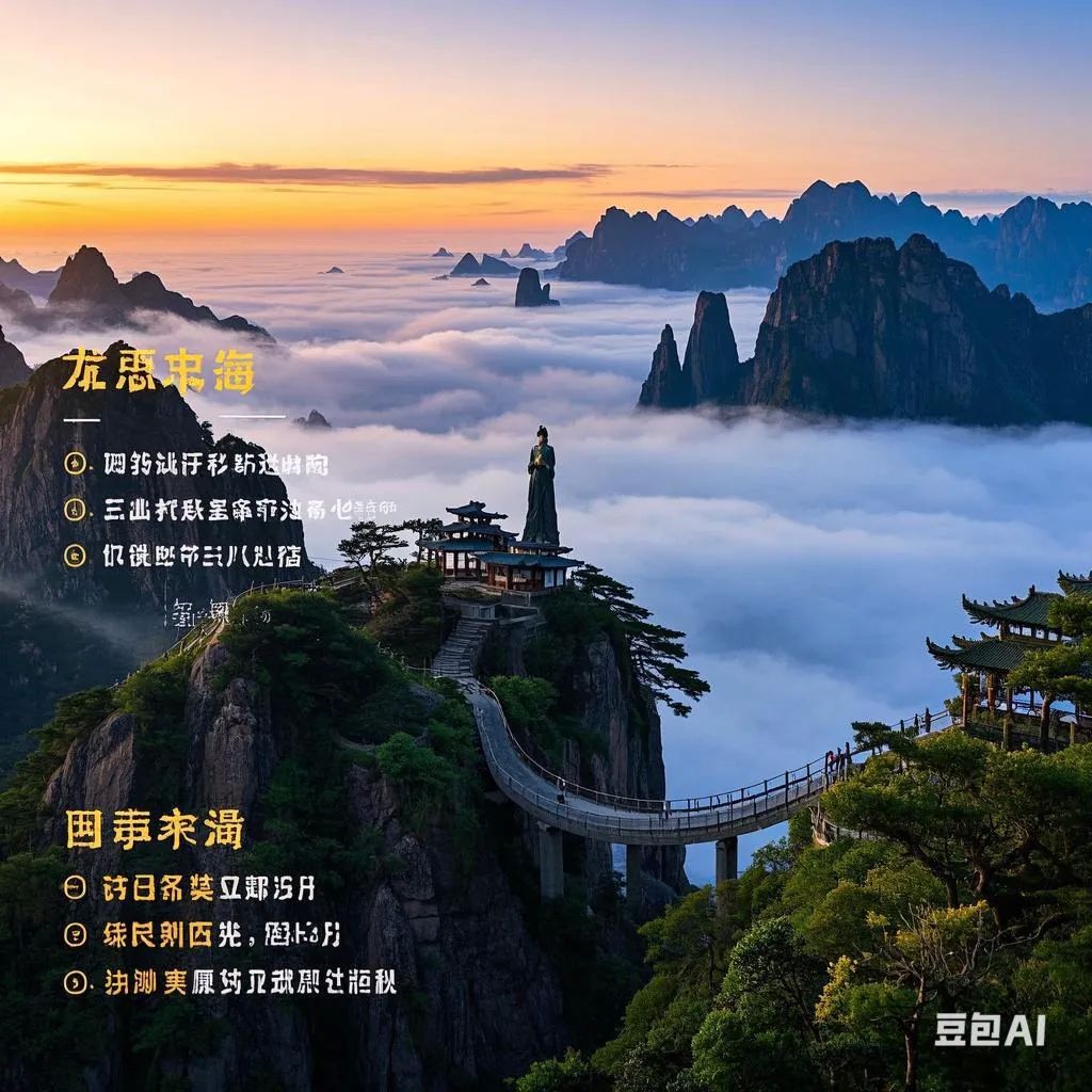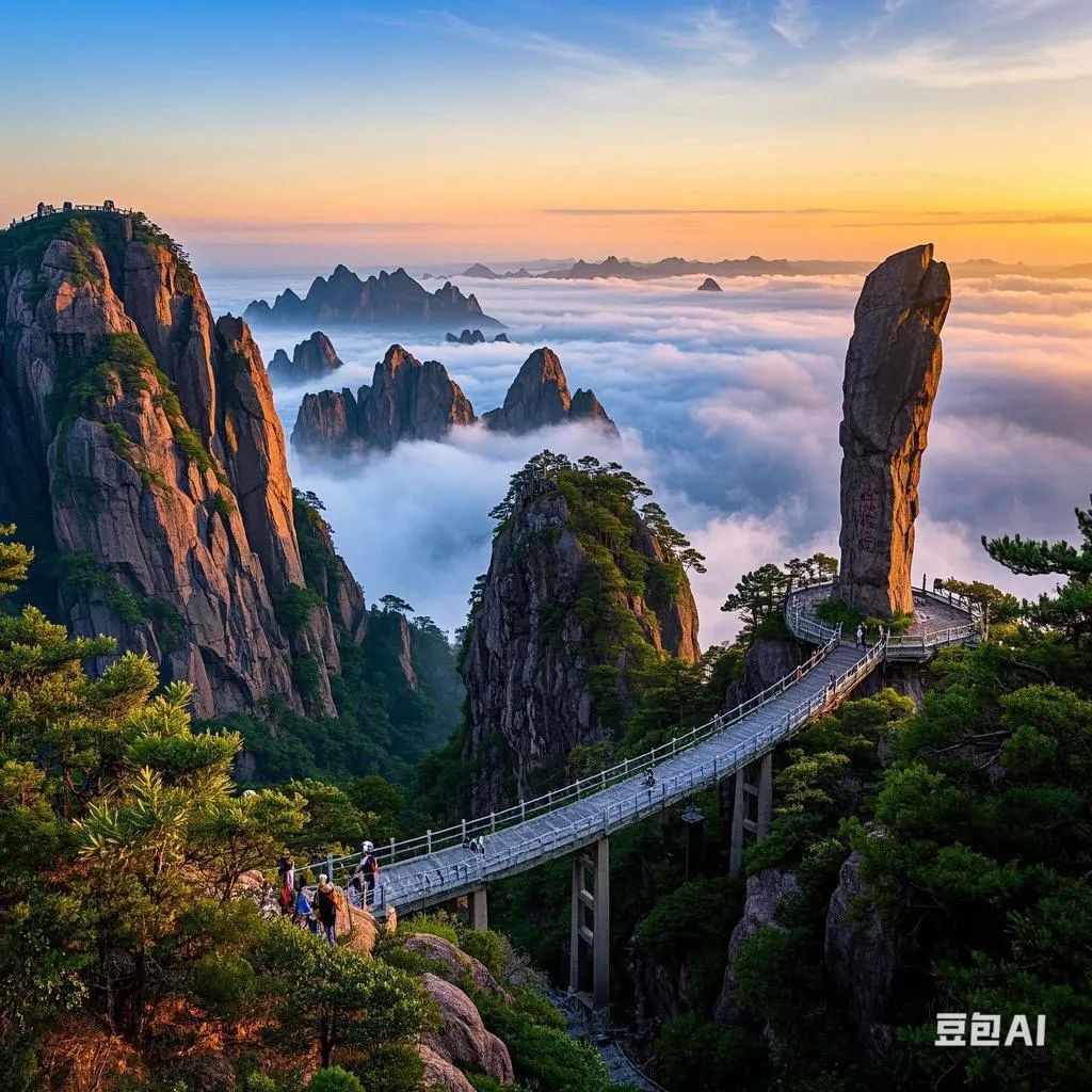 - **高空栈道**:全长约4公里,悬挂在海拔1600米的悬崖上,可俯瞰云海、奇松和深谷。