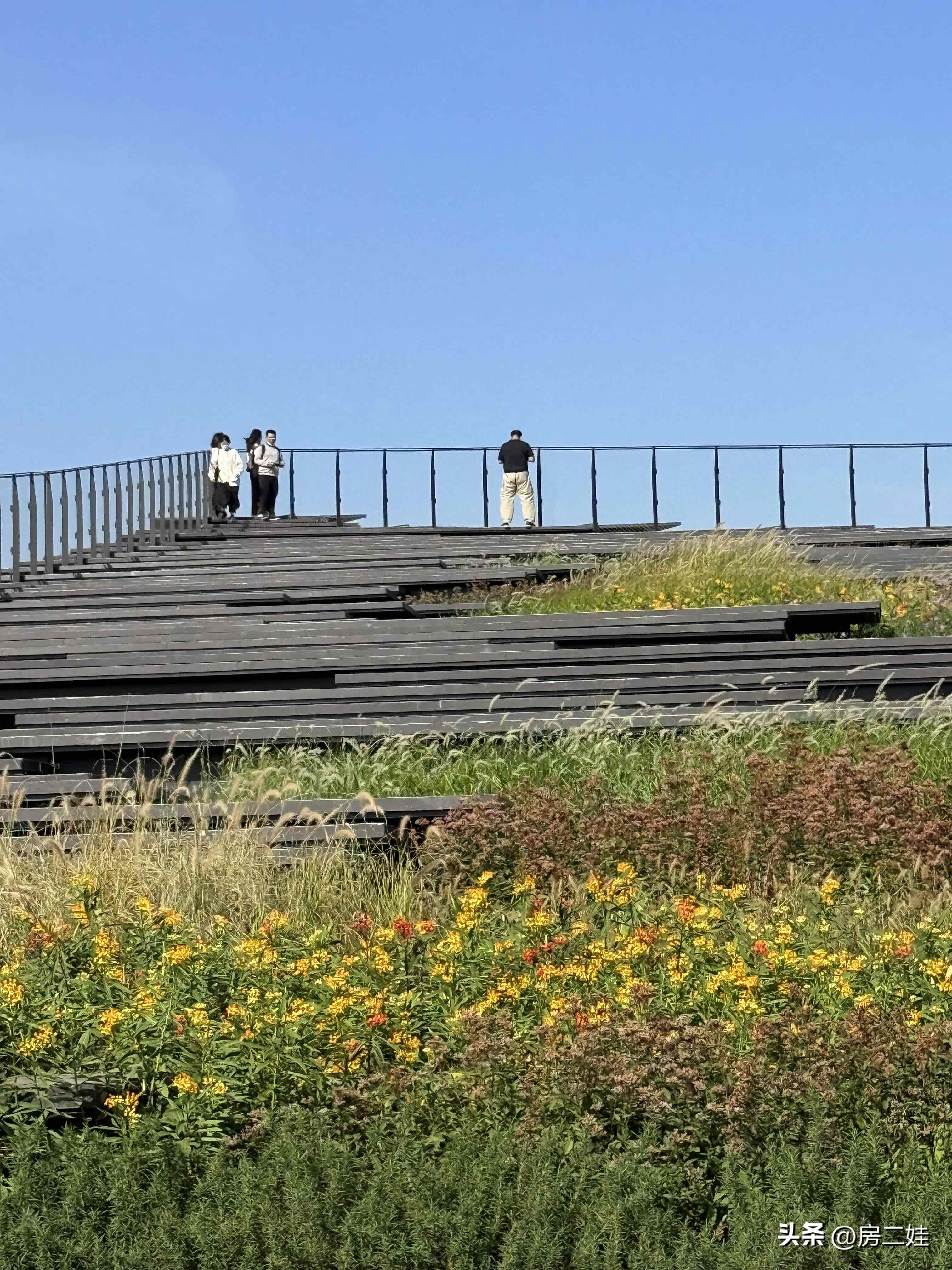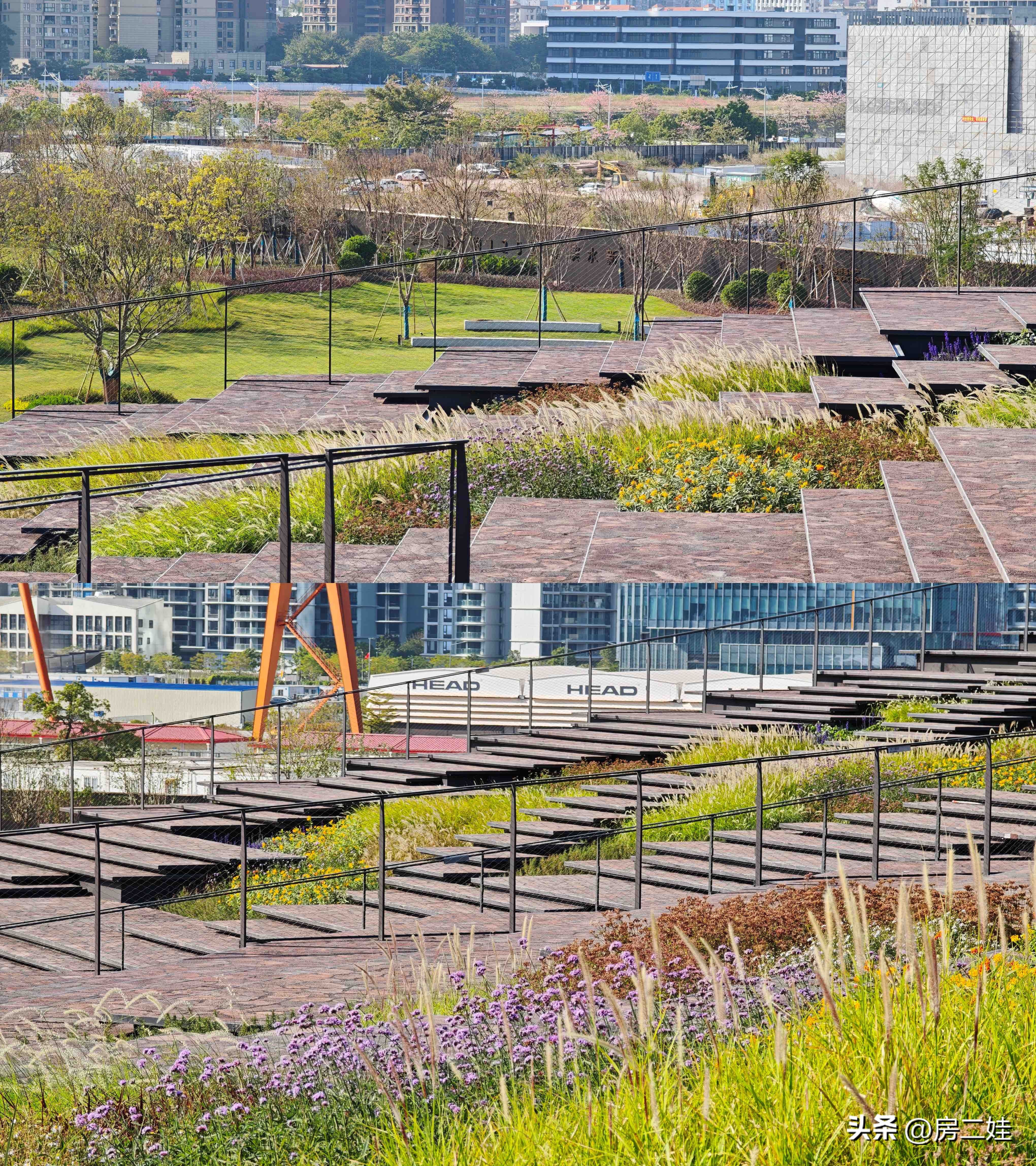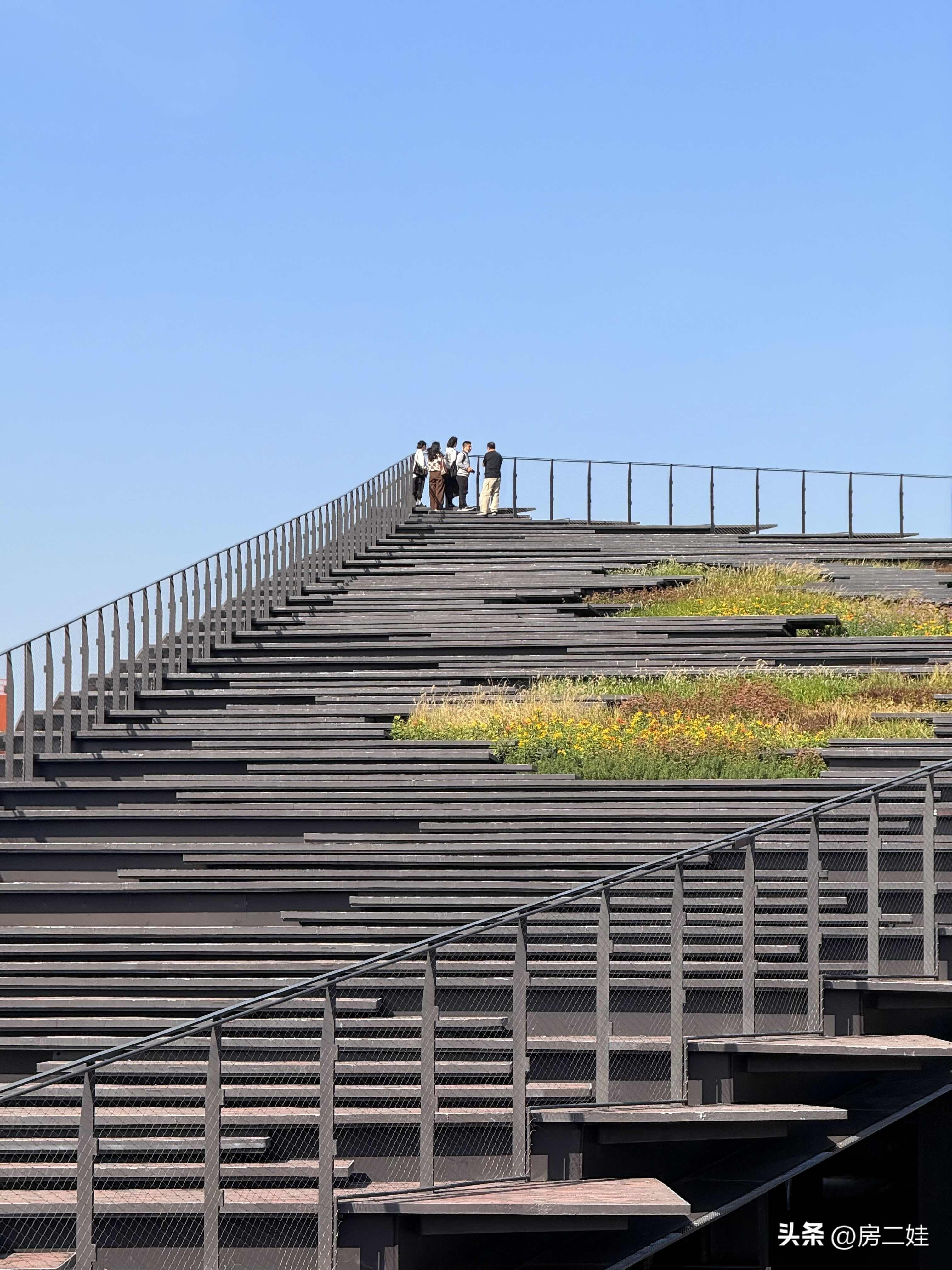 造型独特不说,整个建筑顶部,还做得是阶梯式的观景区,还种了一些花草点缀,整体效果非常和谐。有一种我在丽江山坡上的那种舒服和自由感。