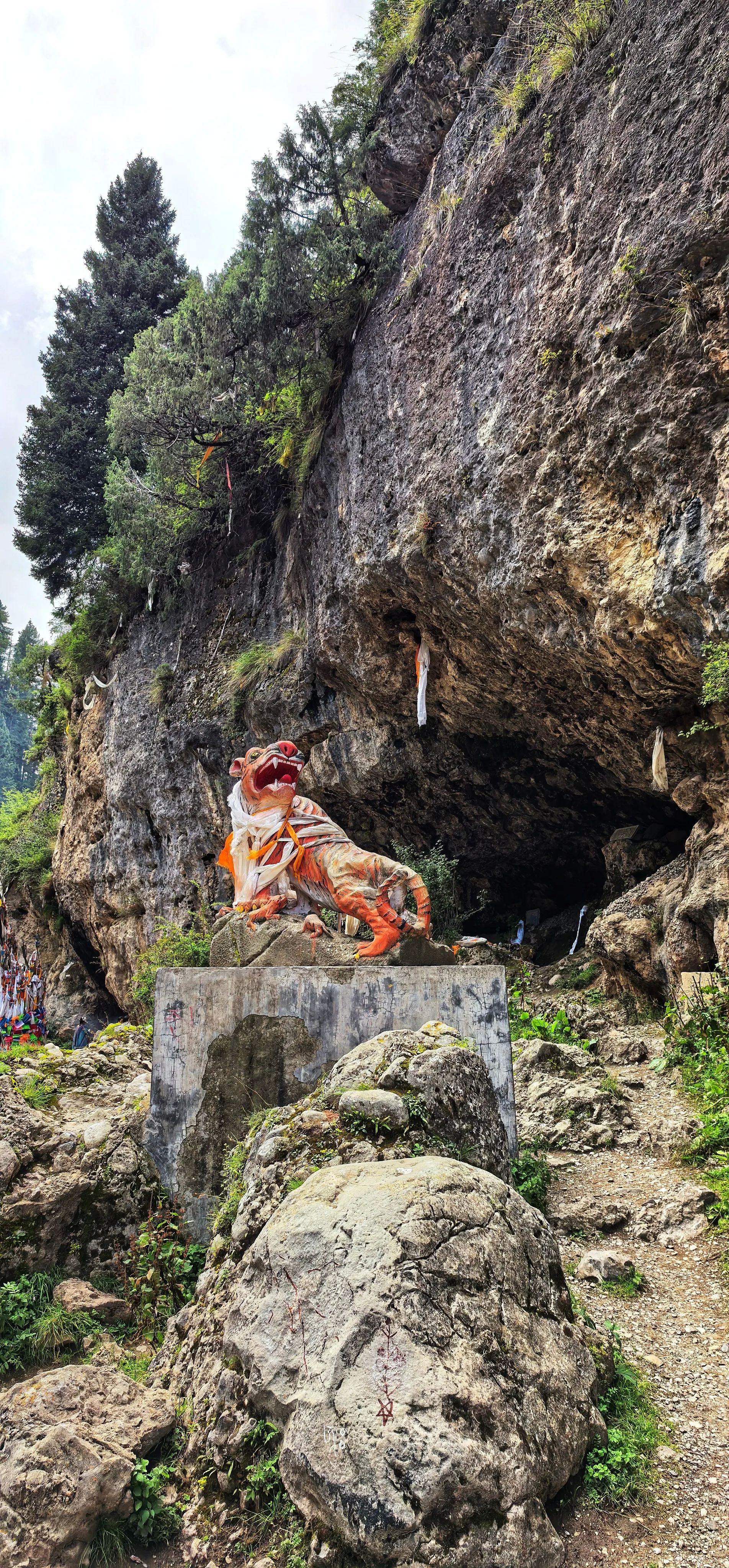 “郎木”在藏语中是仙女的意思,而“郎木寺”这个名字意为“虎穴中的仙女”,这或许是在大峡谷沟口建个老虎雕像的原因吧(图1)。