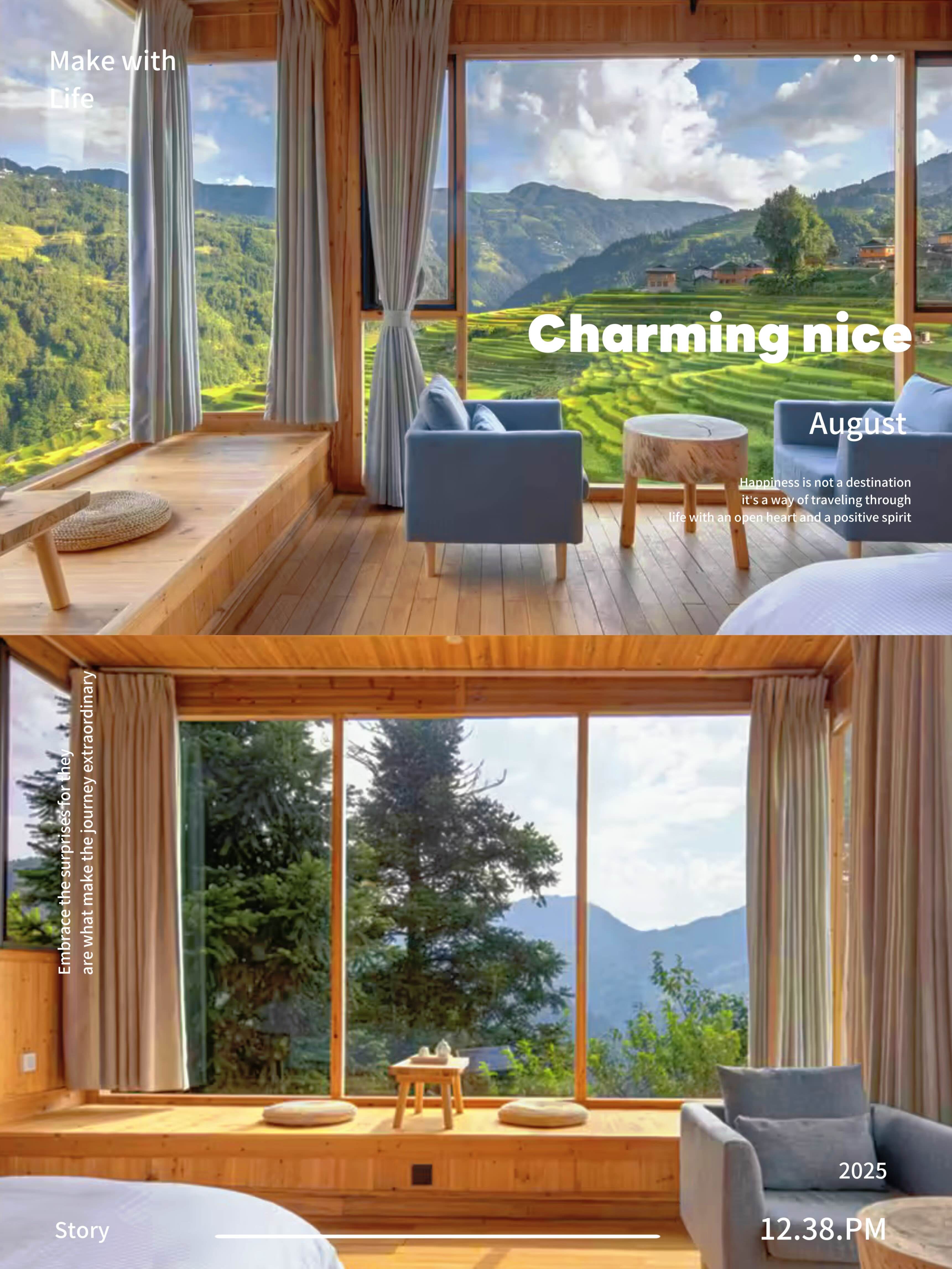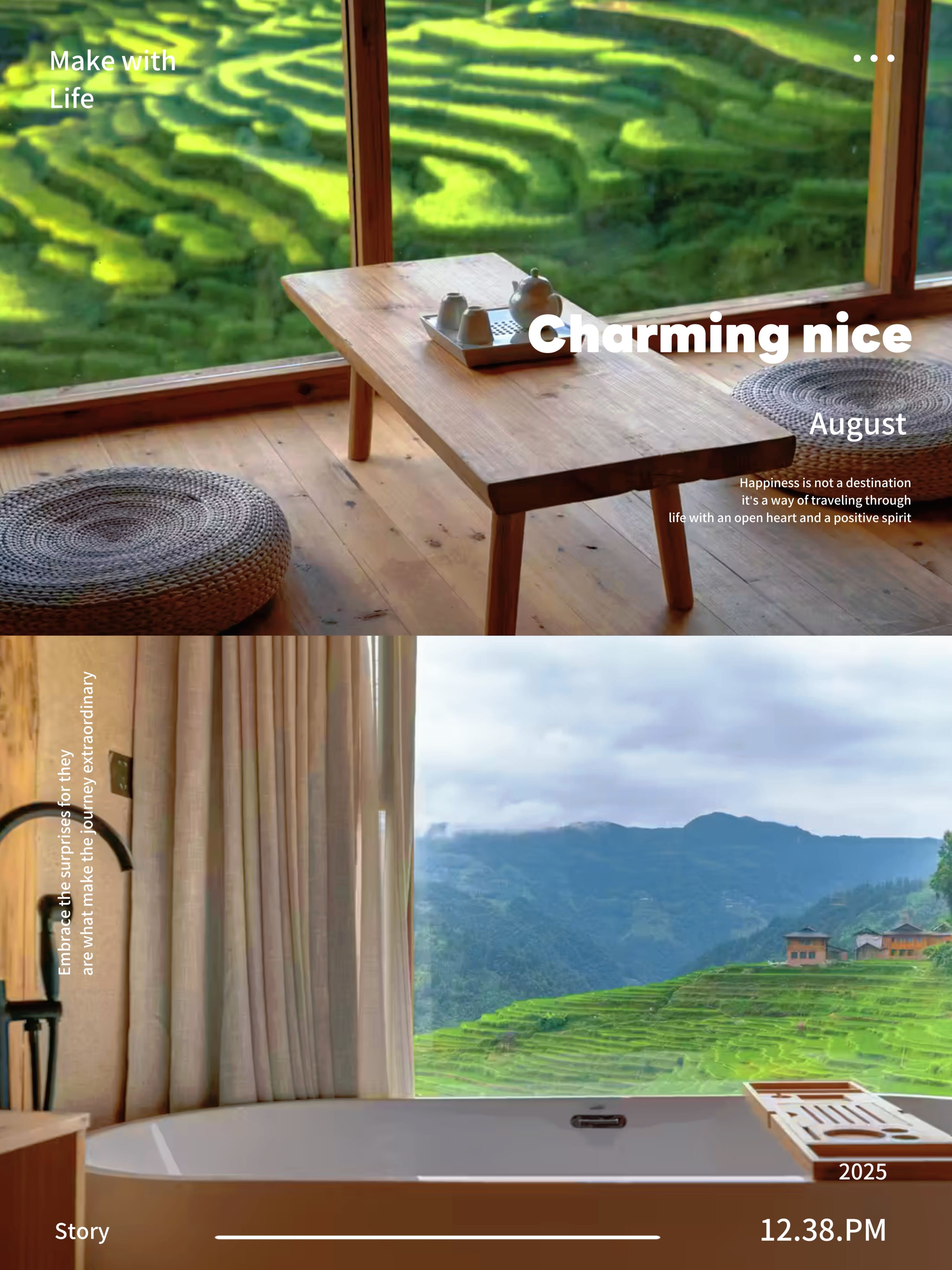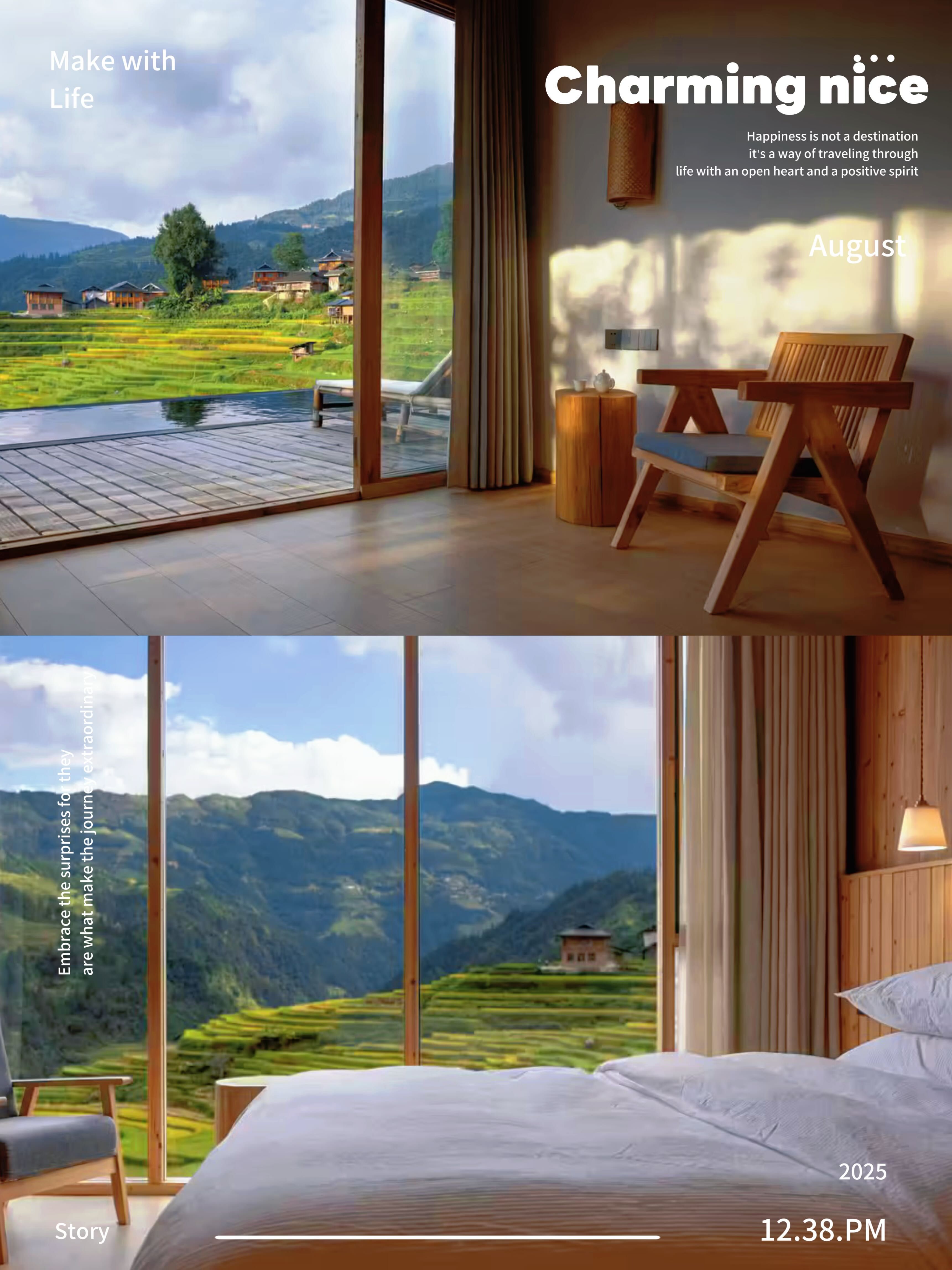 • 房间惊喜:梯田景观房带全景落地窗!躺在床上就能看晨雾漫过梯田,像住进仙境 床品是棉麻材质,逛累了秒睡~