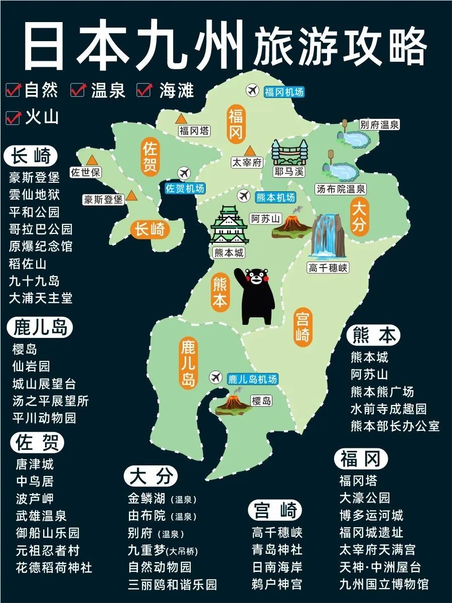 日本旅游九州全境线路攻略已备好!收藏冲九州位于日本南部,大致分为北九州和南九州