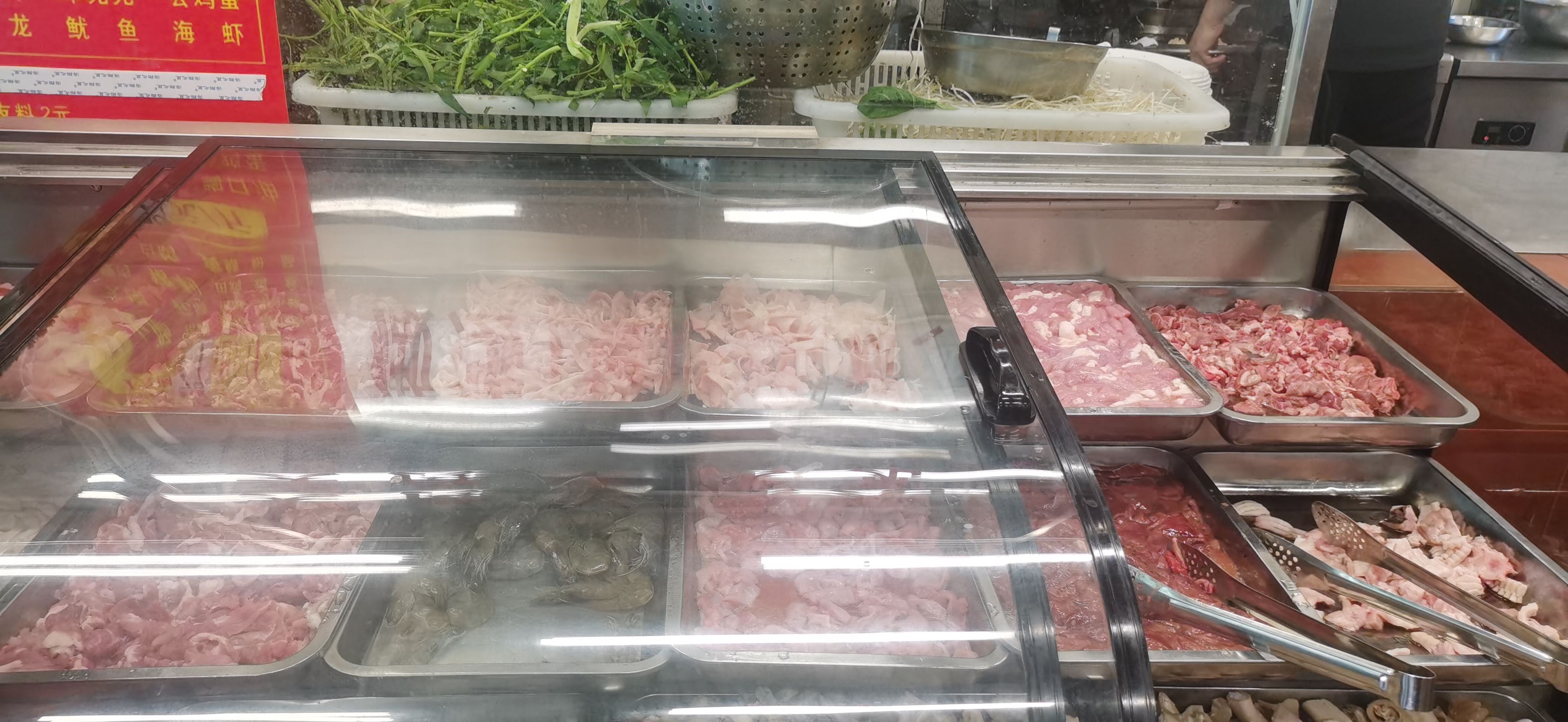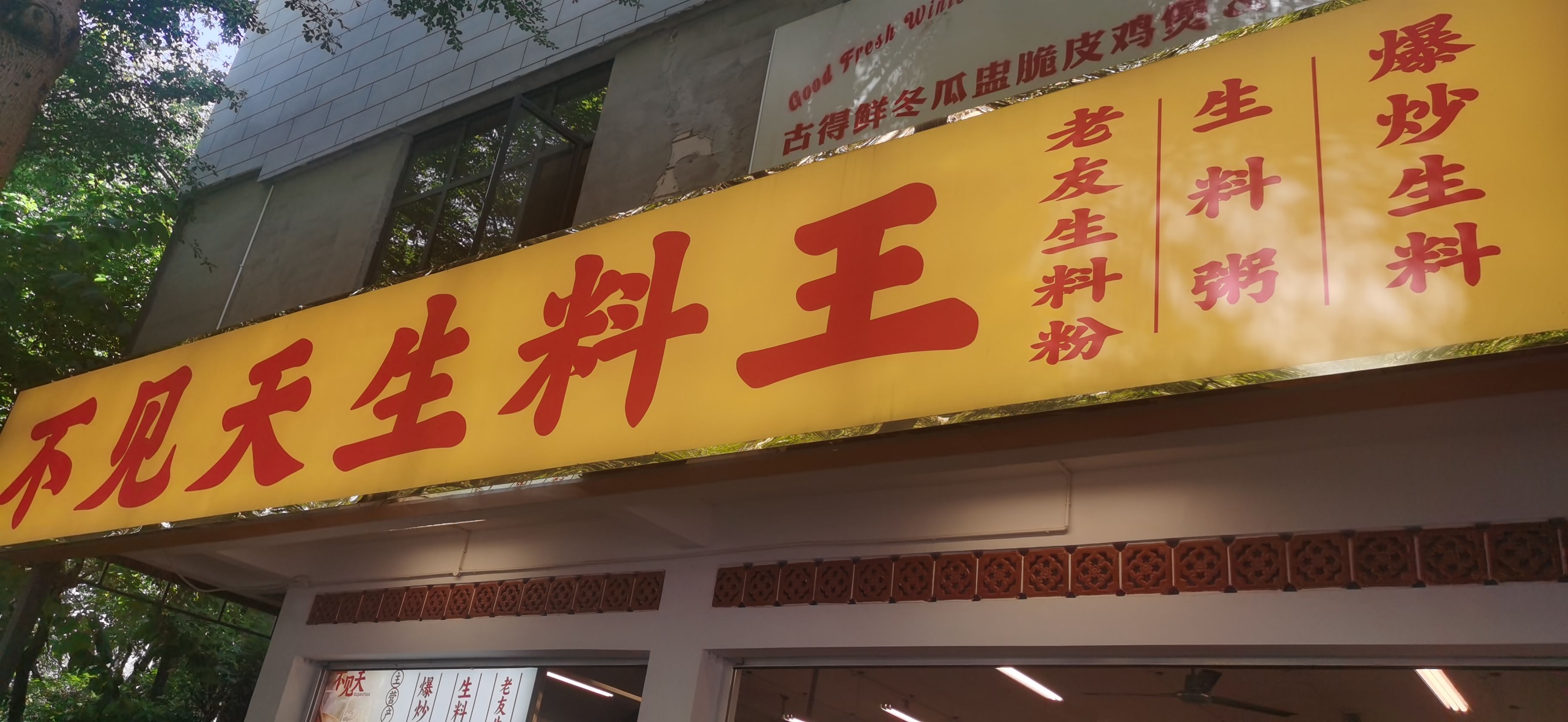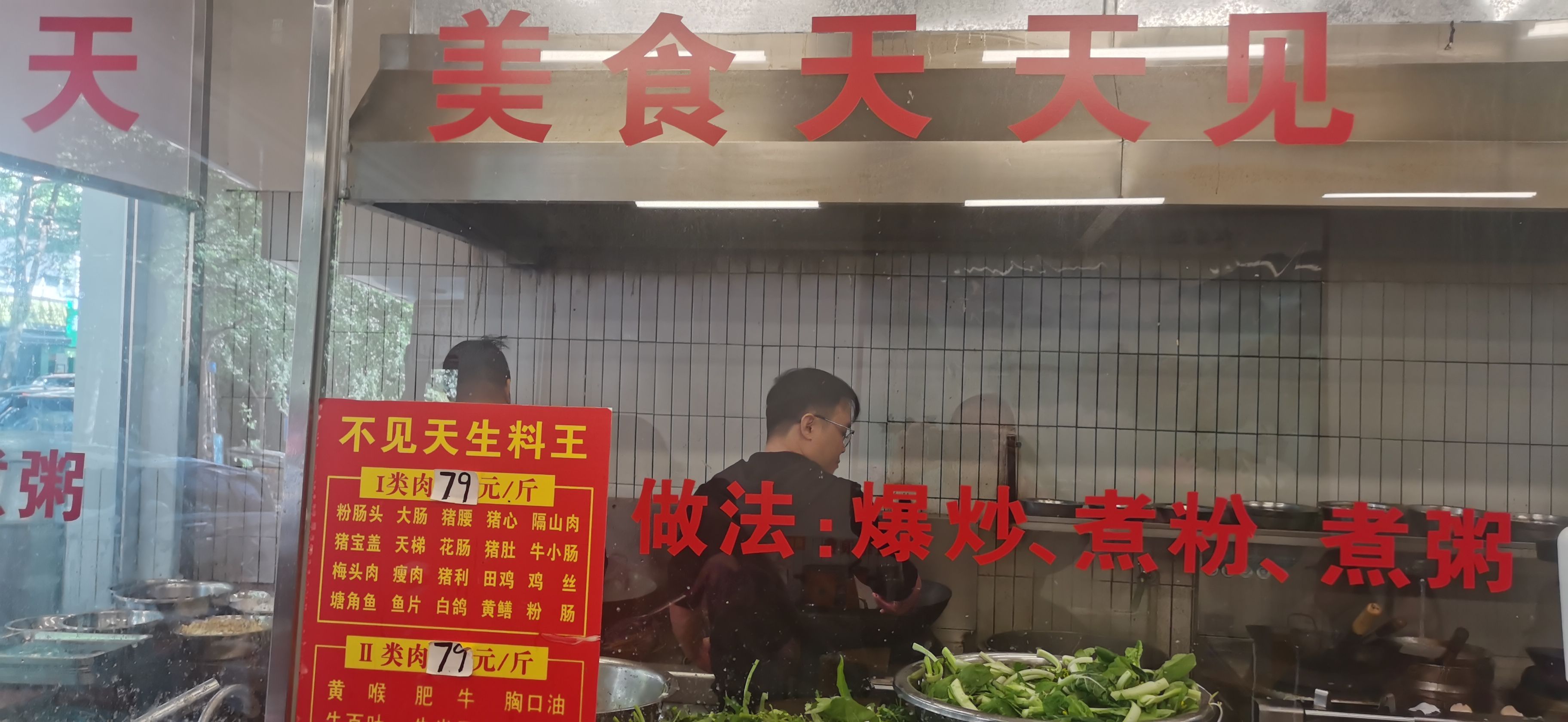 到一个地方,只在大酒店用餐可感受不到当地美食。于是早餐我去品尝了当地油茶,午餐去了不见天生料王,这是一家现炒菜肴的路边餐馆。店里有大肠、猪腰、鱼片、猪利、田鸡、黄鳝等几十种生料任人挑选,按斤售卖,一斤79元,现场炒制,还会搭配一份蔬菜。我点了通心菜,米饭和粥免费赠送,吃得十分惬意,人均消费50元。