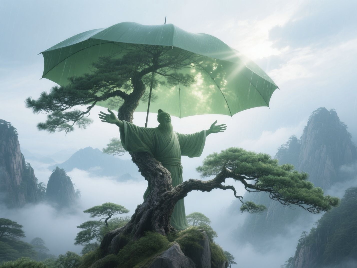 搭乘云谷索道(80元)扶摇直上,10分钟穿越云海。下索道后直奔始信峰,这里是黄山松的博物馆——连理松、龙爪松各具形态,云雾缭绕间宛如仙境。