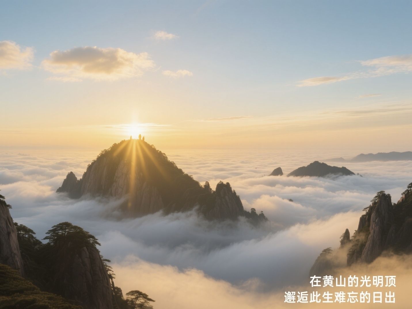 当第一缕曙光刺破云层,群峰披上金装,云海翻涌如万马奔腾。按下快门的瞬间,你会明白为何黄山日出被誉为“人生必看十大美景”之一。