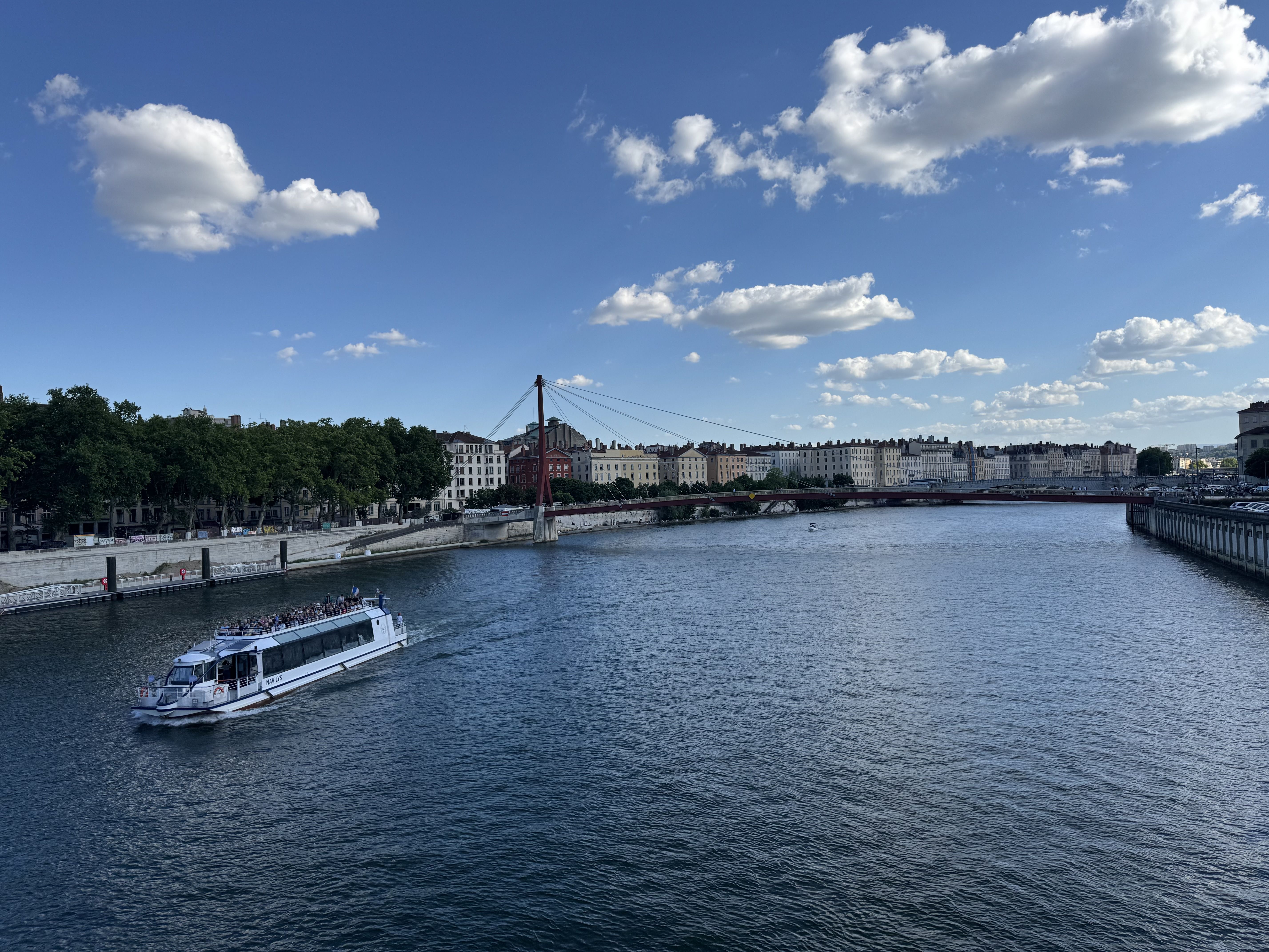 游完富维耶山后,我们驱车去酒店办理入住。稍作休息后,团长带着我们乘地铁前往里昂老城游览观光。我们住的酒店到老城、地铁只有六站,想不到的是我们买票后找方向、才发现这一站的地铁口左右两边在地下是不互通的[捂脸]团长很睿智、上去坐两站、出去调换方向OK里昂的地铁是无人驾驶,游客也可以清晰地看到地铁两旁及轨道。