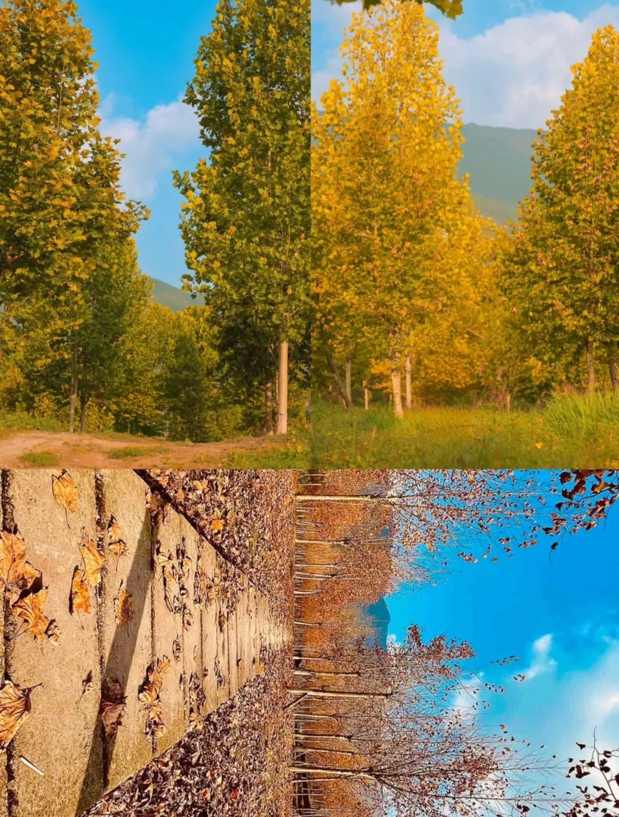 偶然发现的石坝中学成了我此行的惊喜。山坡上成片的金色梧桐让人仿佛走进了童话世界。因为是学校区域,建议周末前往,而且要记得保持安静。我特别喜欢这里错落有致的地形,可以找到各种角度的拍摄点。站在山坡上俯拍,可以捕捉到梧桐叶铺满地面的浪漫景象。若是带着长焦镜头,还能远眺校园的红砖建筑与金色梧桐形成的色彩对比。