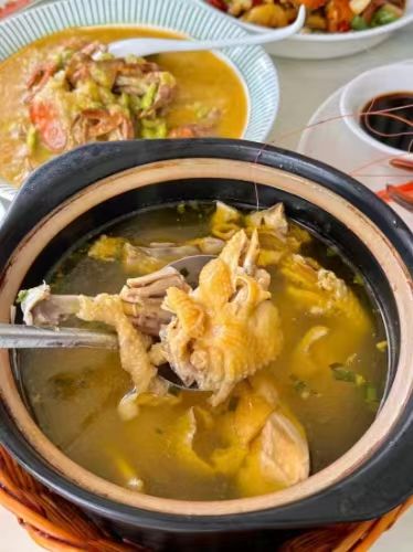 • 而一盅暖心的农家土鸡汤,则是这桌鲜美食物的最佳伴侣。用散养土鸡长时间慢火炖煮,汤色金黄清亮,表面浮着一层薄薄的油花,香气扑鼻。喝上一口,鲜醇温润,不仅能暖胃,更能中和蟹的寒凉,让这一餐在满足与舒适中达到完美的平衡。