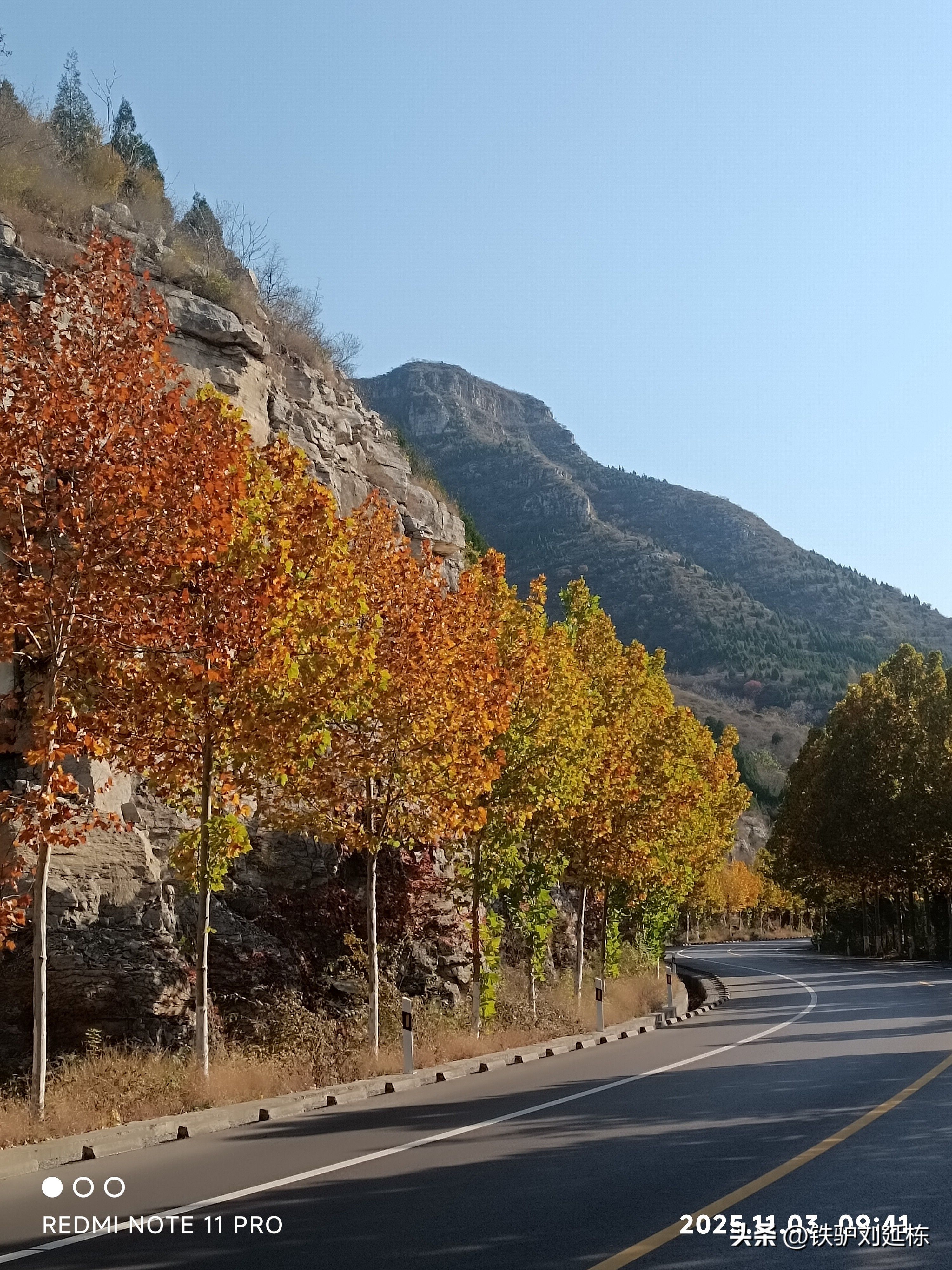齐鲁大地自驾游,金秋初冬,阳光明媚的一天,开车行驶在从淄博到潍坊仰天山的路上