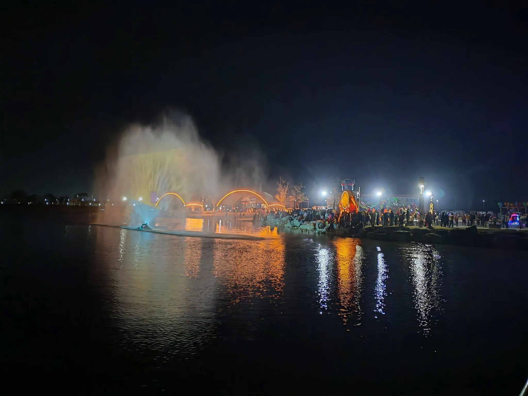 济南商河的3A景区清水湖公园新推出了水幕电影