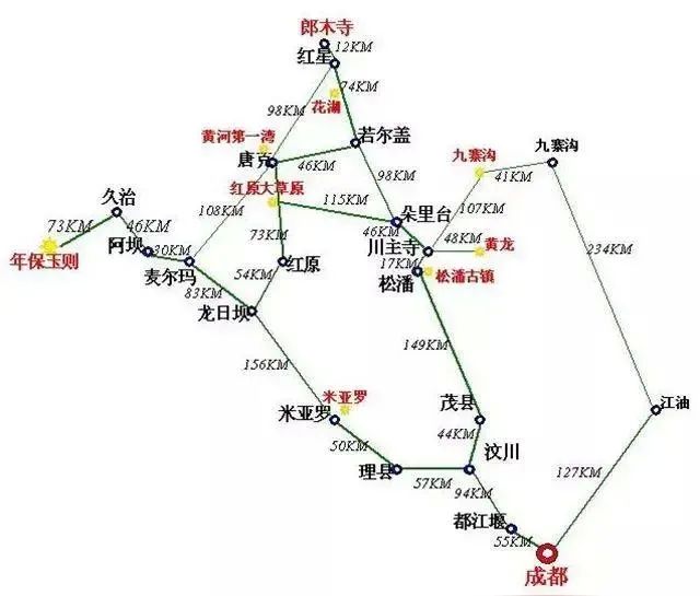 有巴西会议遗址、黄河九曲第一弯、花湖、太阳湖、红原月亮湾、白洼寺院、达格则寺院和降扎温泉等。
