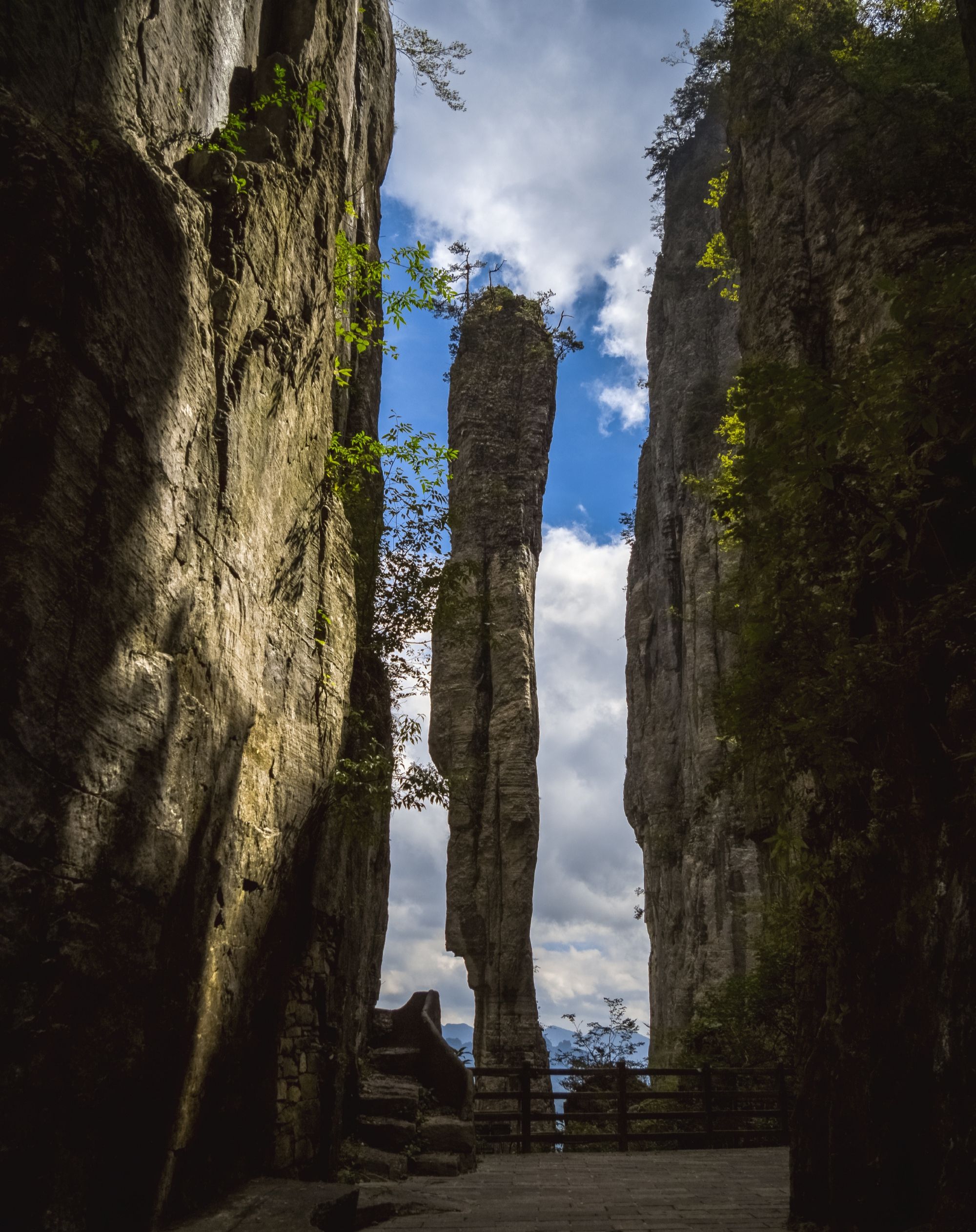 以壮观的喀斯特地貌闻名,绝壁栈道凌空穿云,“一炷香”石柱巍然独立,堪称地质奇观的天然博物馆。