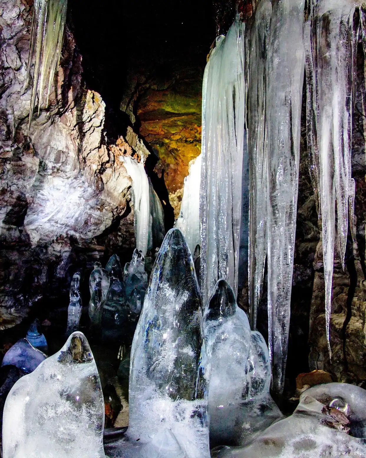 酌江溶洞奇观: 乘船进入“地下艺术长廊”,千姿百态的钟乳石在彩灯映照下如梦似幻。