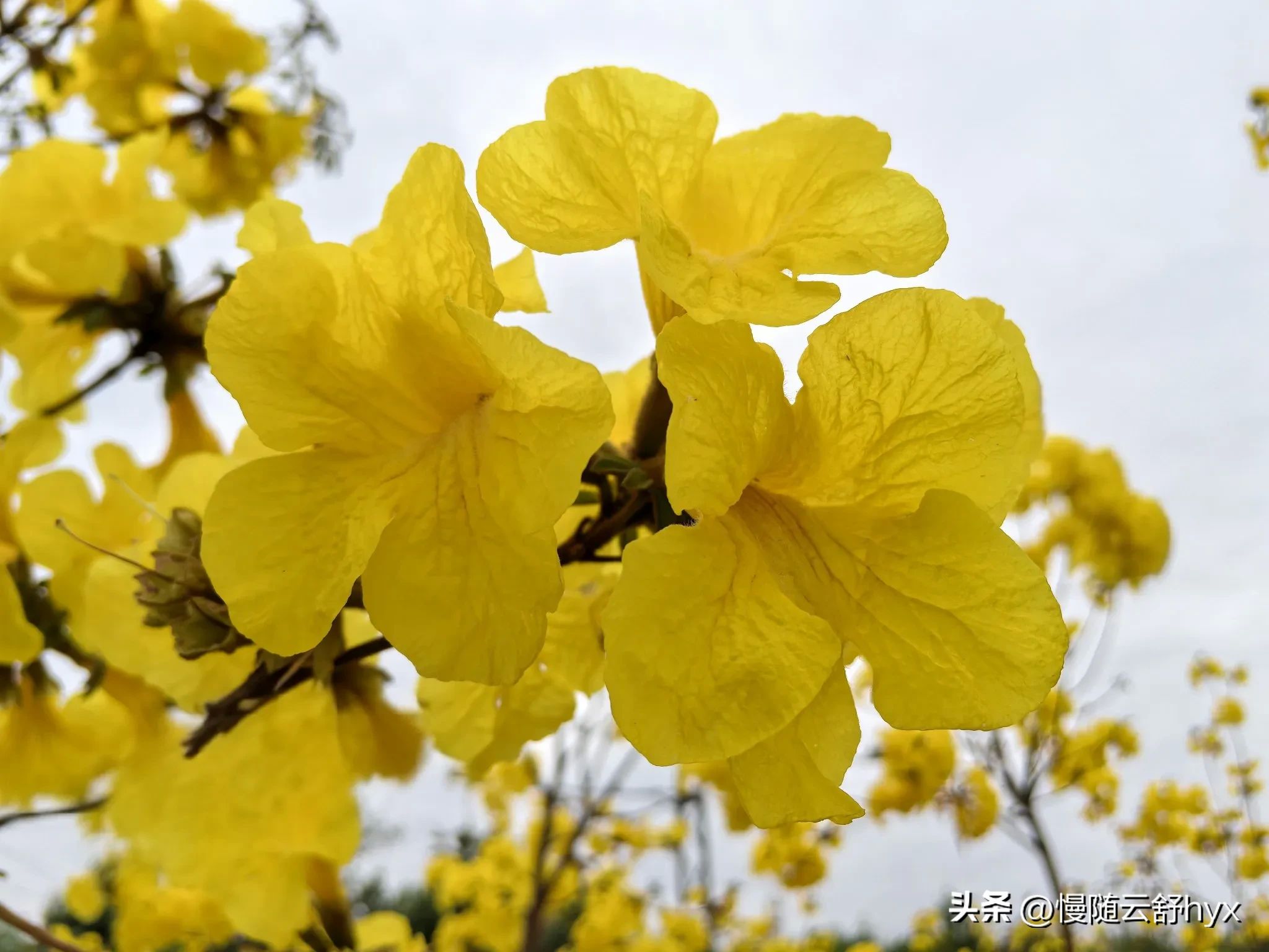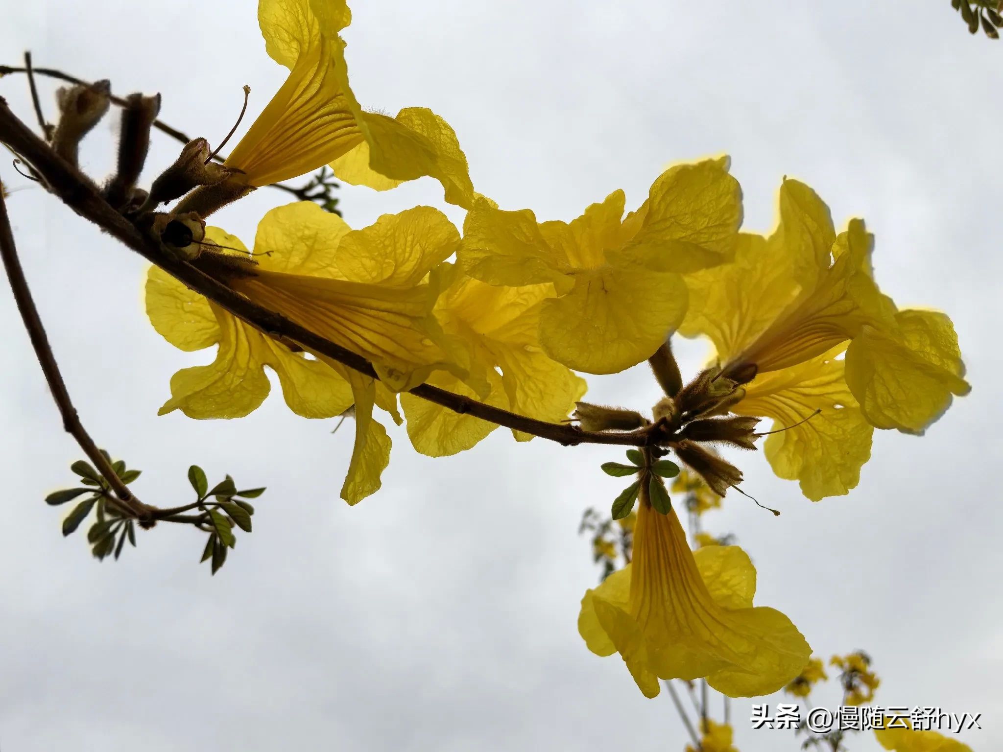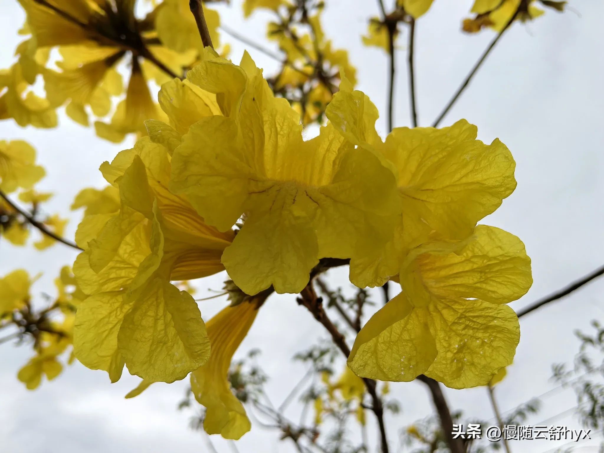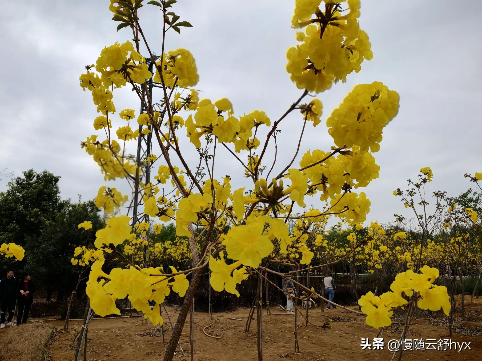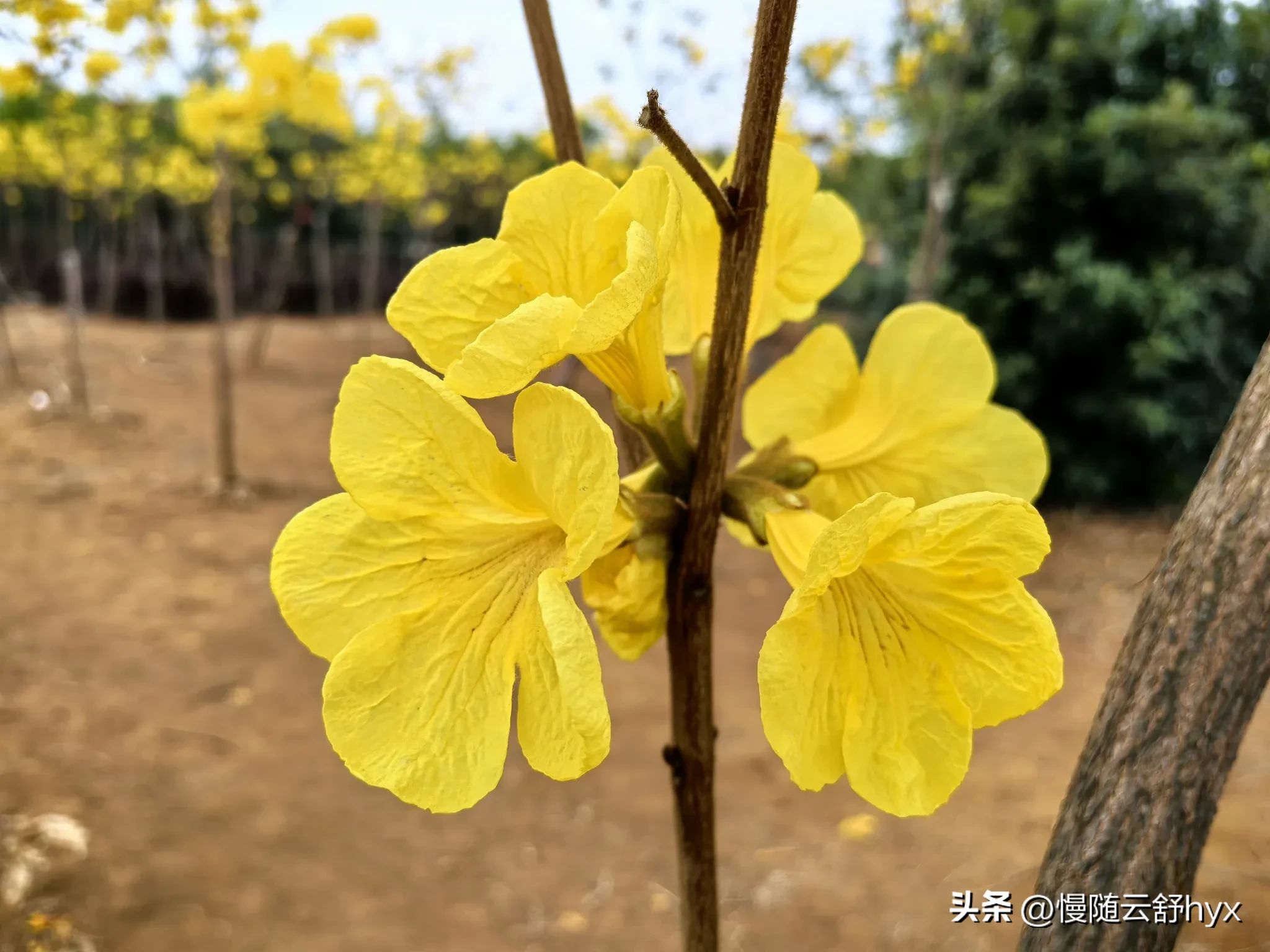 [思考]黄花风铃——又名“黄金风铃木”“黄钟木”,是紫葳科风铃木属的落叶乔木(可高达15米),原产于中南美洲热带地区。花冠呈喇叭状。花期通常在2月-4月,一般先开花后长叶。耐旱不耐寒 。还有红花风铃。
