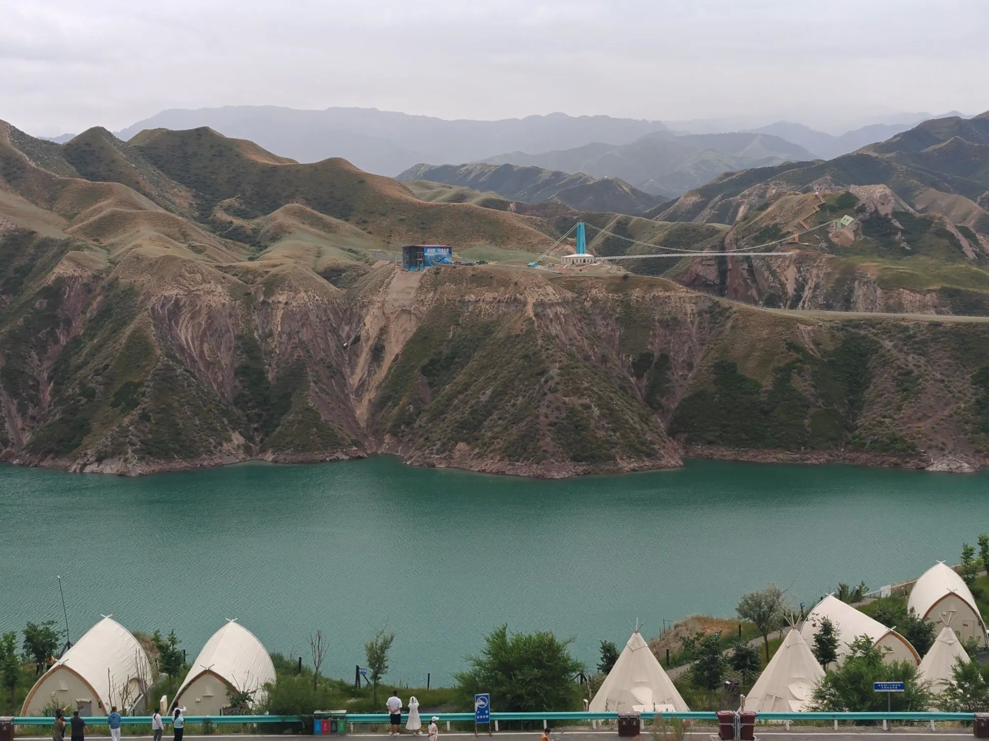 百里丹霞景区的丹霞地貌,彩色的陡峭山峰巍然挺拔,错落有致,非常夺目。它和肯斯瓦特湖这里交汇。肯斯瓦特在蒙古语里是河流交汇的意思,湖水碧绿深邃静谧,碧绿的湖水穿行于蜿蜒折回的红色、褐紫色山崖之间,碧水与丹霞相映成趣,很是迷人。