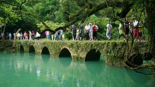 - 荔波小七孔:地处黔南布依族苗族自治州荔波县,有“地球上的绿宝石”之称。景区内清澈碧水与翠绿山峦相互映衬,小七孔古桥横跨河面,古朴雅致,构成如诗如画的美景。