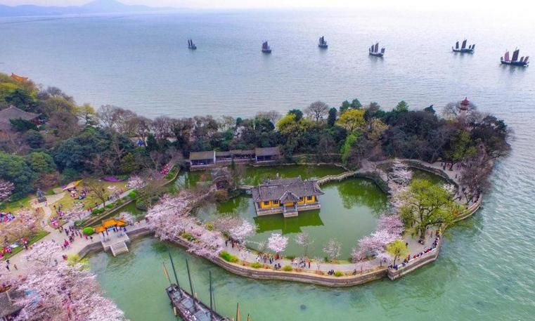 8. 无锡鼋头渚:太湖精华所在,春天3万株樱花沿着长春桥铺成粉色长廊,秋天可品尝“太湖三白宴”,还可登上太湖仙岛,看道教宫观悬于碧波之上。