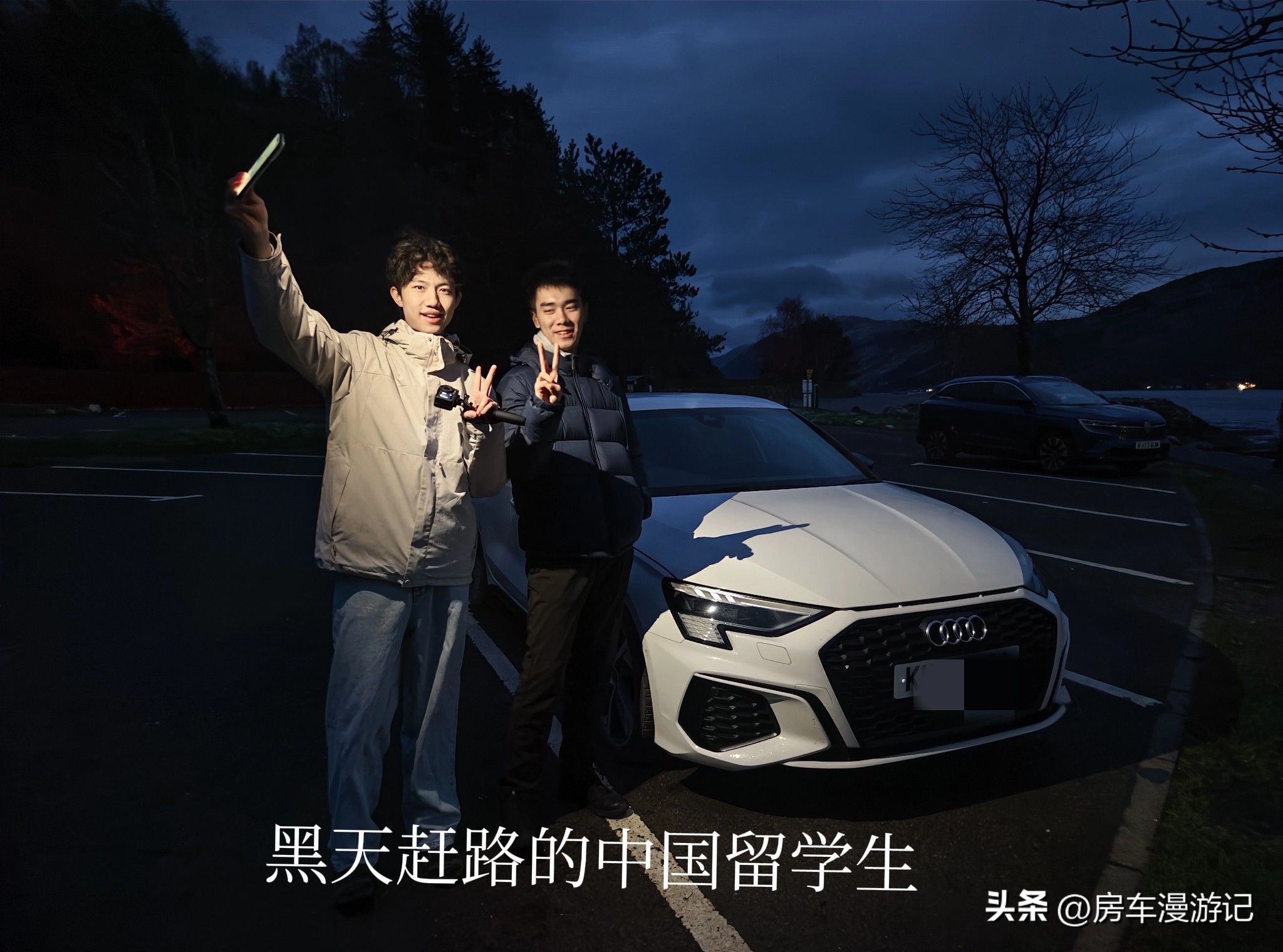 苏格兰冬令时下午5点多天就已经很黑了,他们要赶回威廉堡的酒店,还有100多公里的山路,要穿行长长的峡谷,翻越一座特别陡的山岭。天下着小雨,路边的荒草都结上了一层冰。