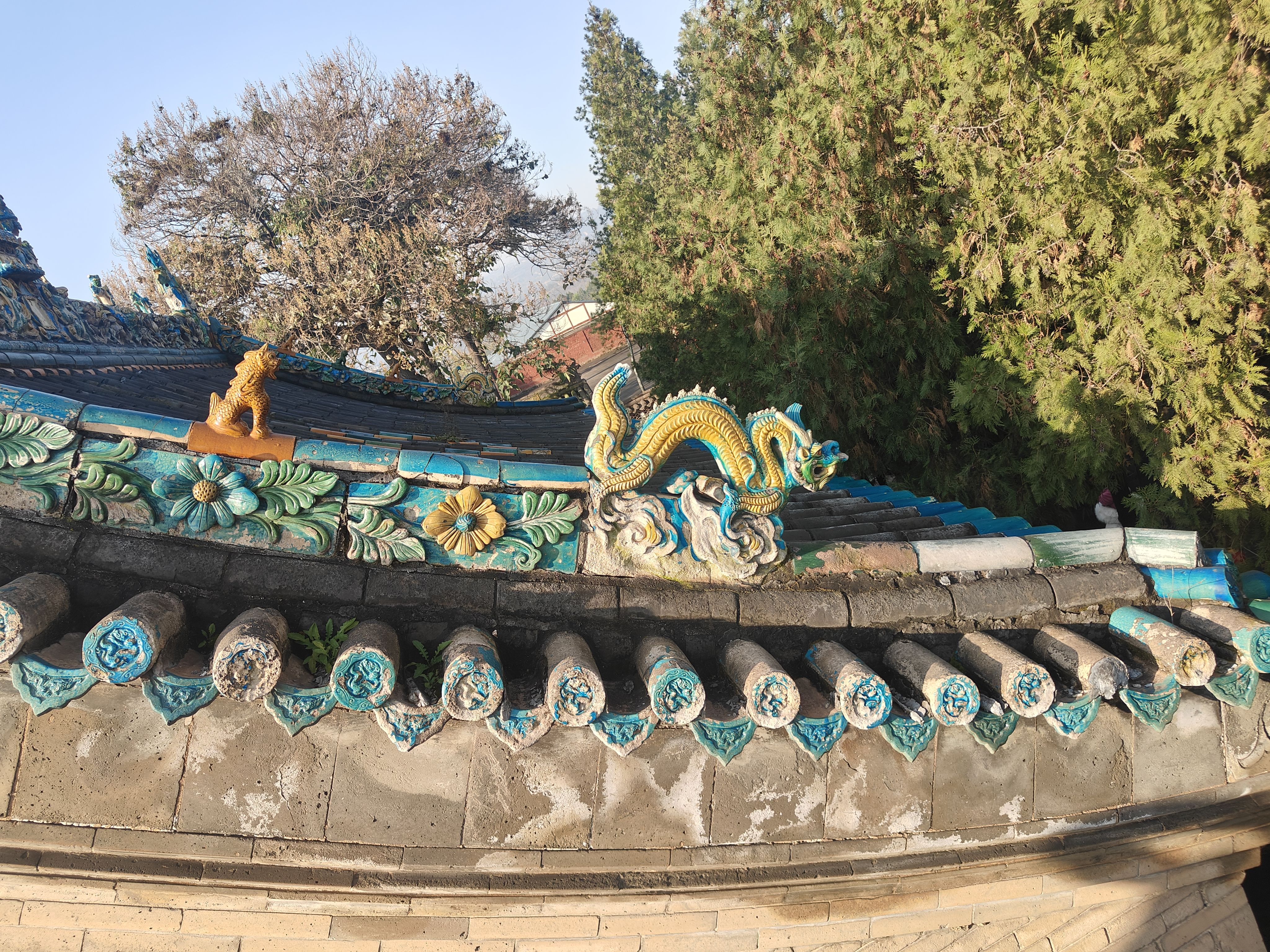 藻井:药师殿的八卦藻井设计精巧,斗拱叠涩,绘有彩色团花图案,象征中草药,是国内罕见的建筑奇观。