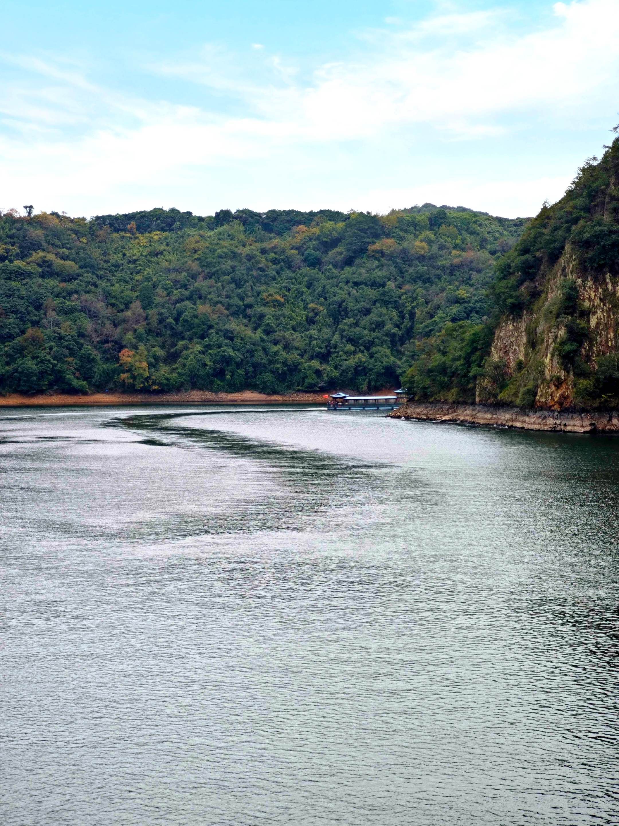 乘船入画:进入景区后,首先需要在大坝码头乘船穿过美丽的五泄湖,在天一碧码头下船。