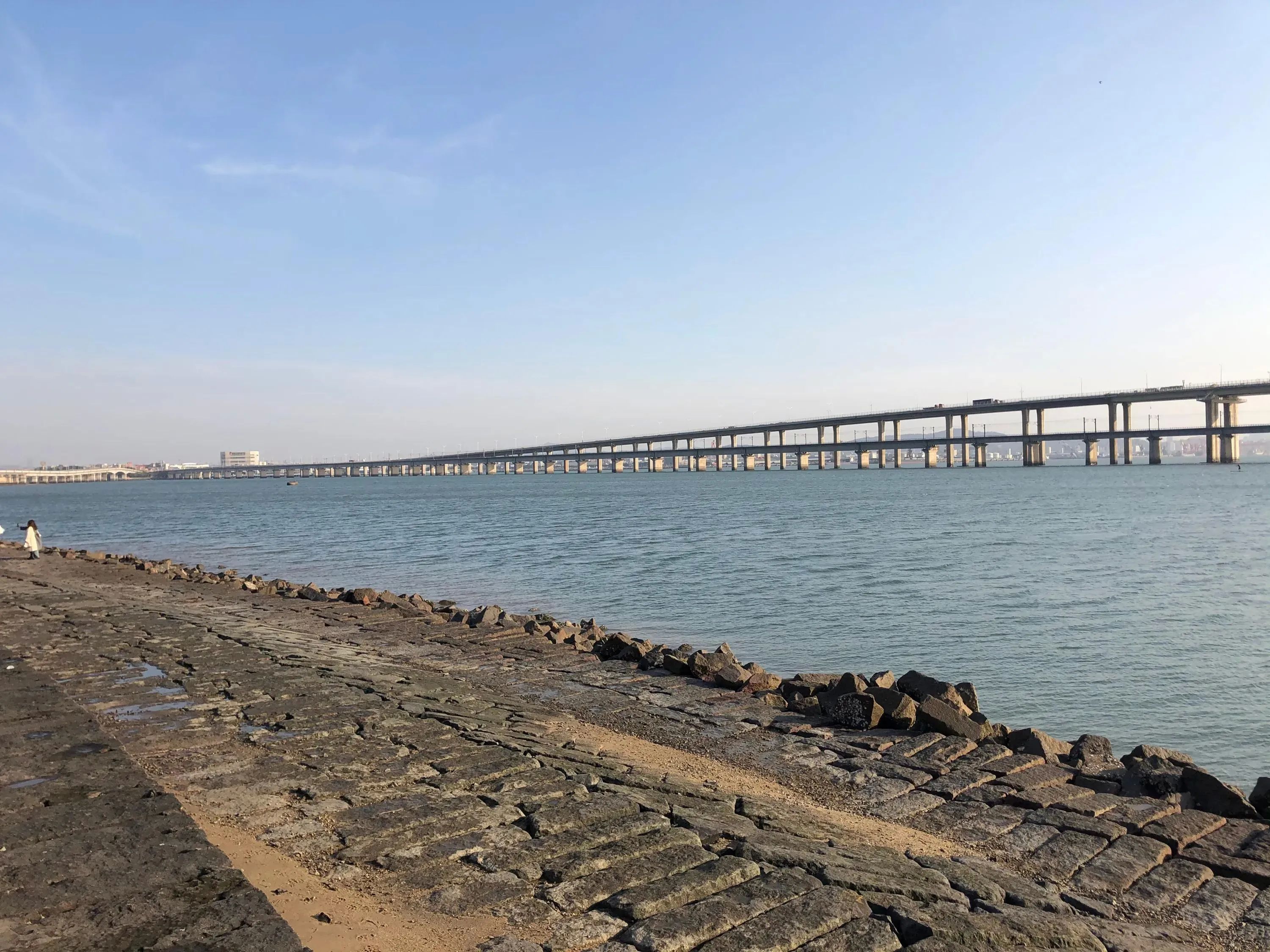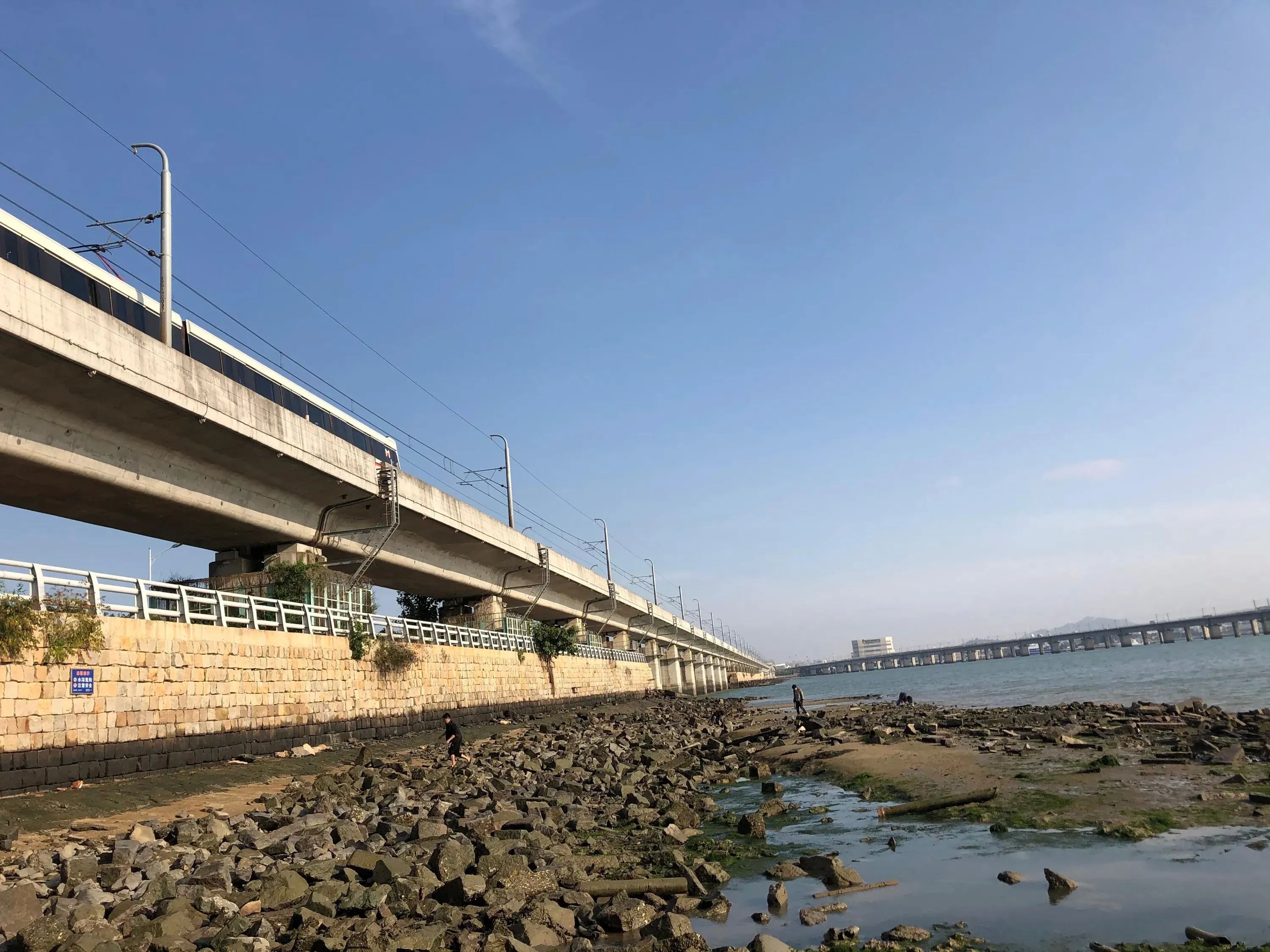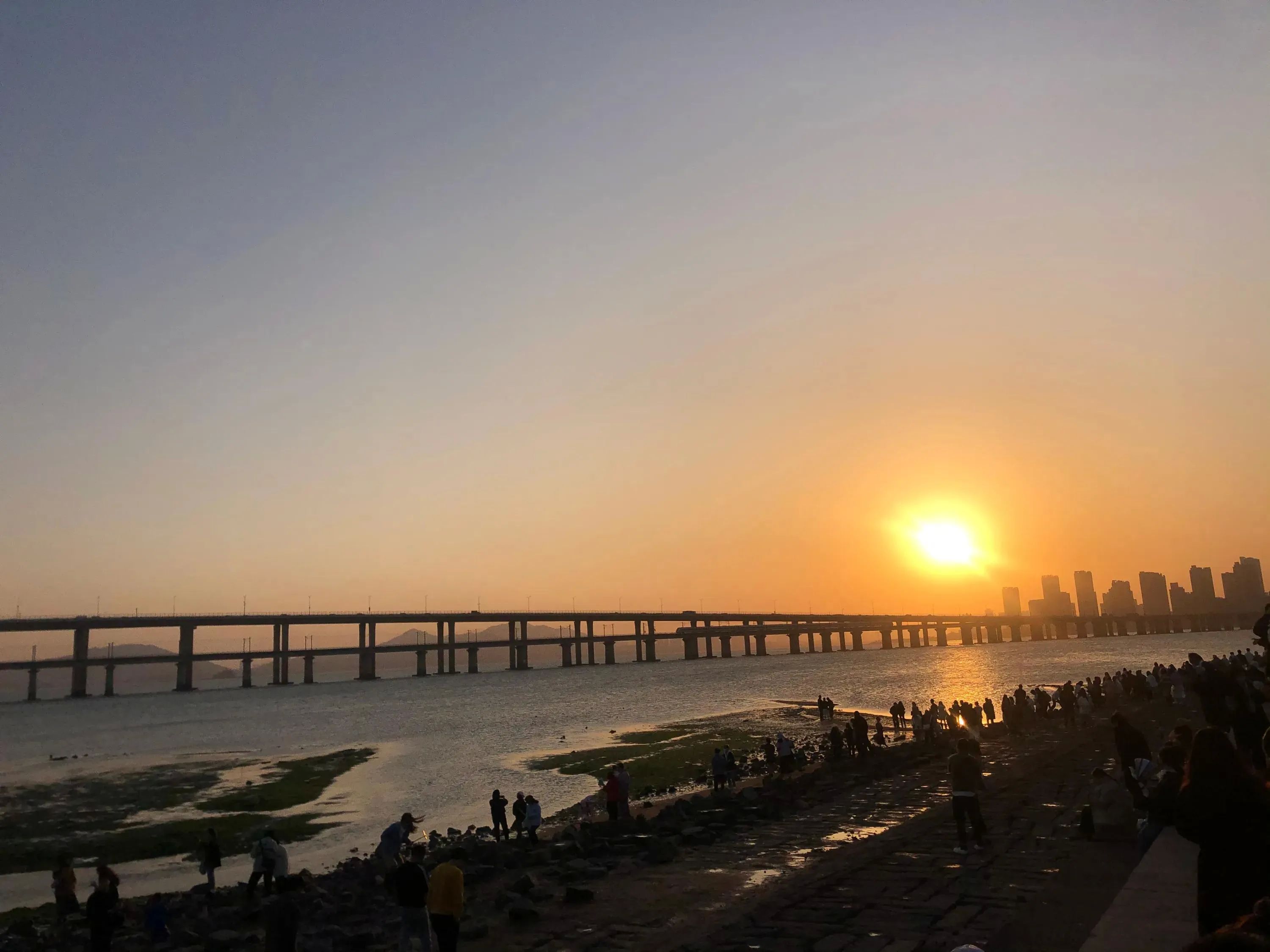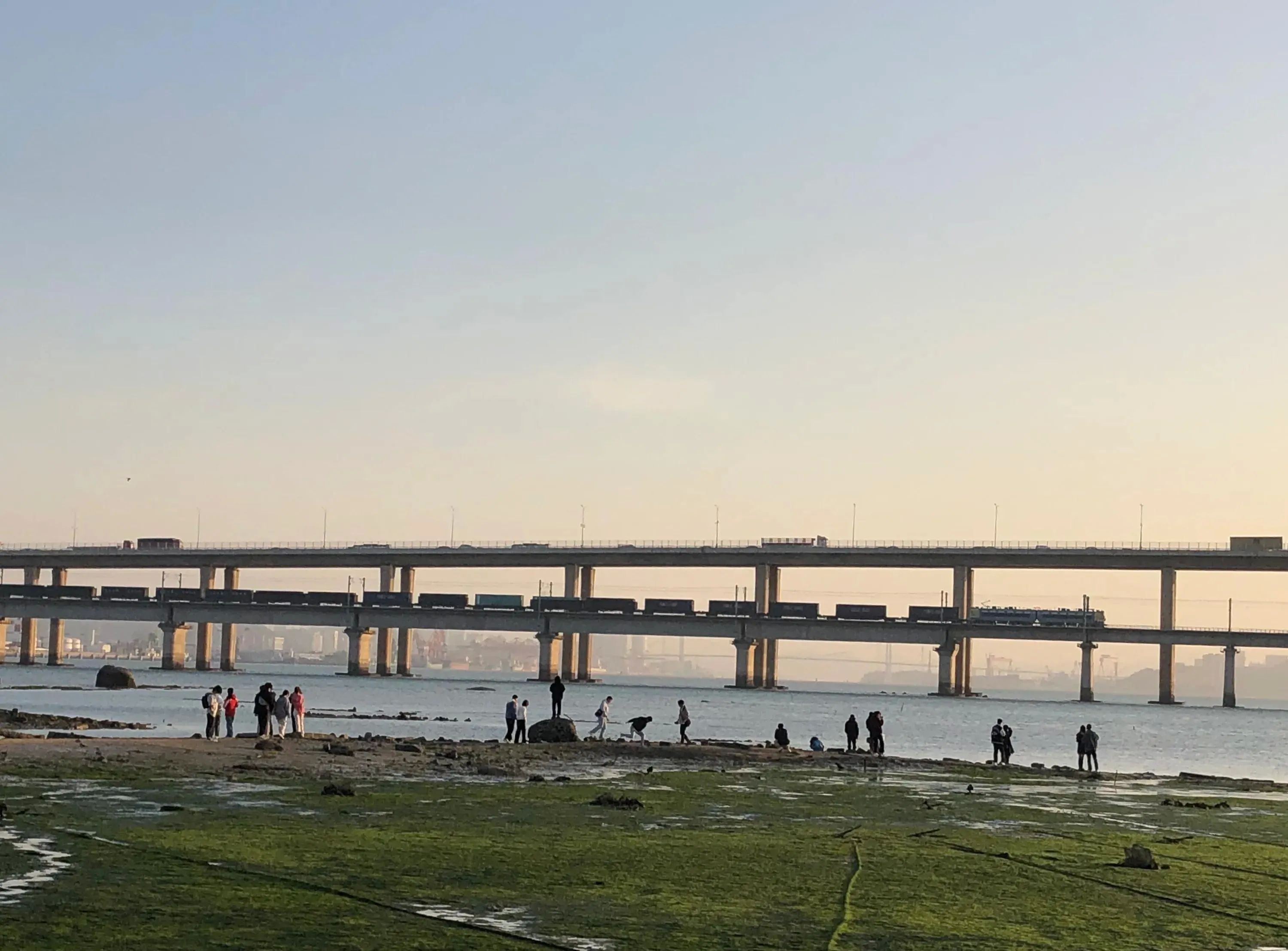乘坐地铁1号线时,你便能邂逅十里长堤的独特美景。列车从长堤上方飞驰而过,窗外是一望无际的大海,仿佛置身于宫崎骏动漫里的“海上列车”场景之中。尤其是在日落时分,天边被染成橙红色,晚霞如梦幻般洒在海面上,列车在余晖中穿梭,构成了一幅美轮美奂的画面,吸引着众多摄影爱好者前来捕捉这一瞬间的美好。