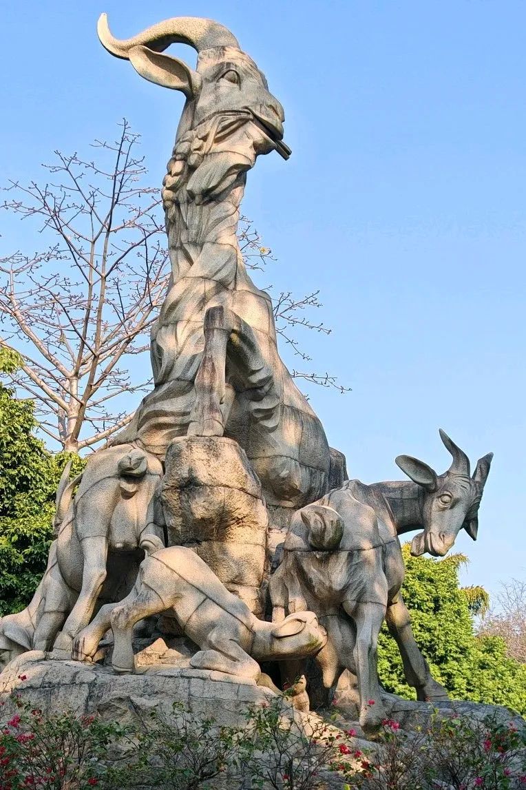 五羊雕像的传说可以追溯到古代。据说在几千年前,广州的土地干旱,人民生活困苦。一天,五只神羊从天而降,嘴里衔着稻穗,象征着丰收和希望。它们把稻穗洒在大地上,瞬间化干旱为甘霖,滋润了土地,带来了丰收。自此,广州人对五羊充满了感激与崇敬,五羊也成为了广州的象征,寓意着富饶与幸福。