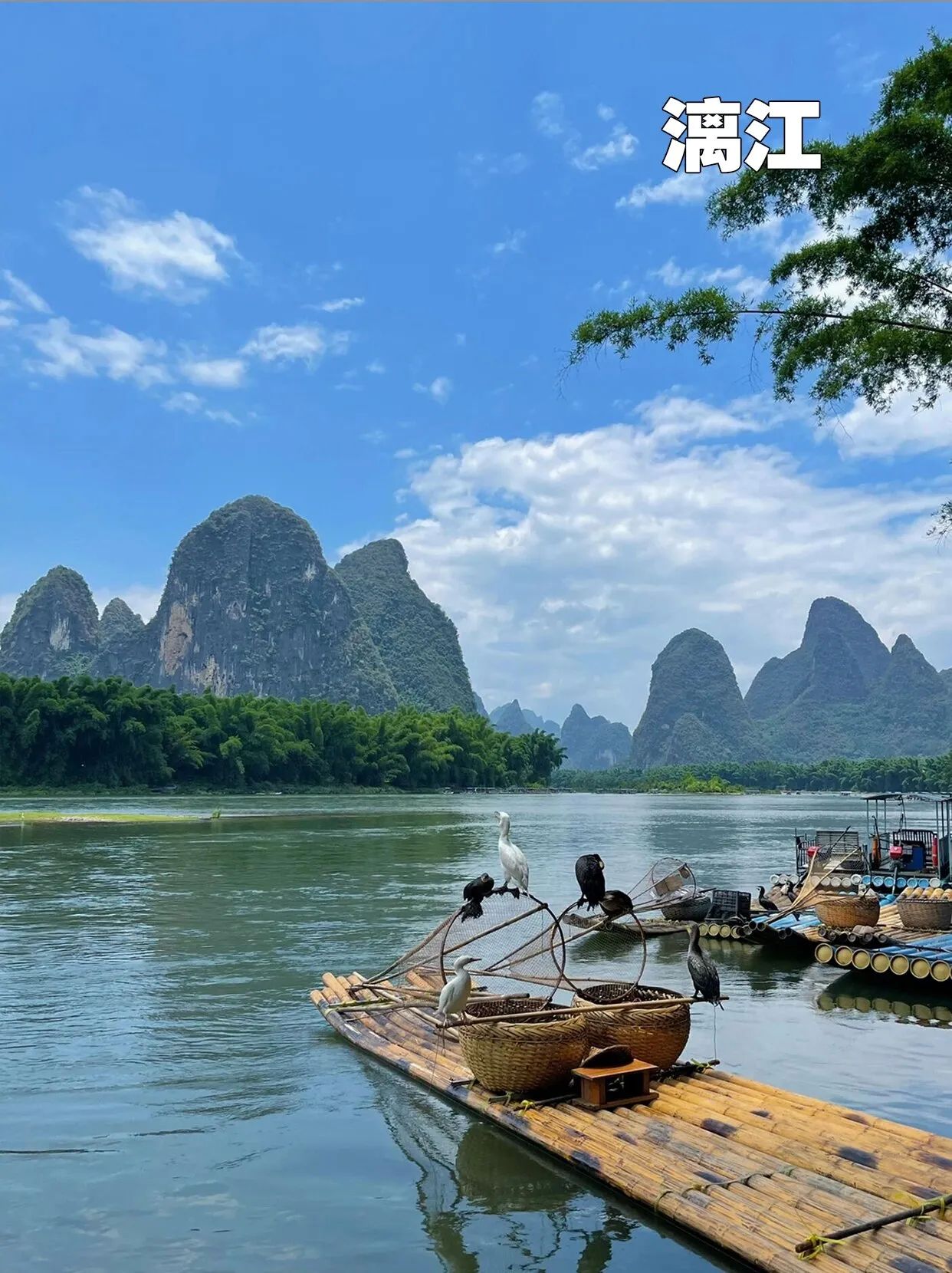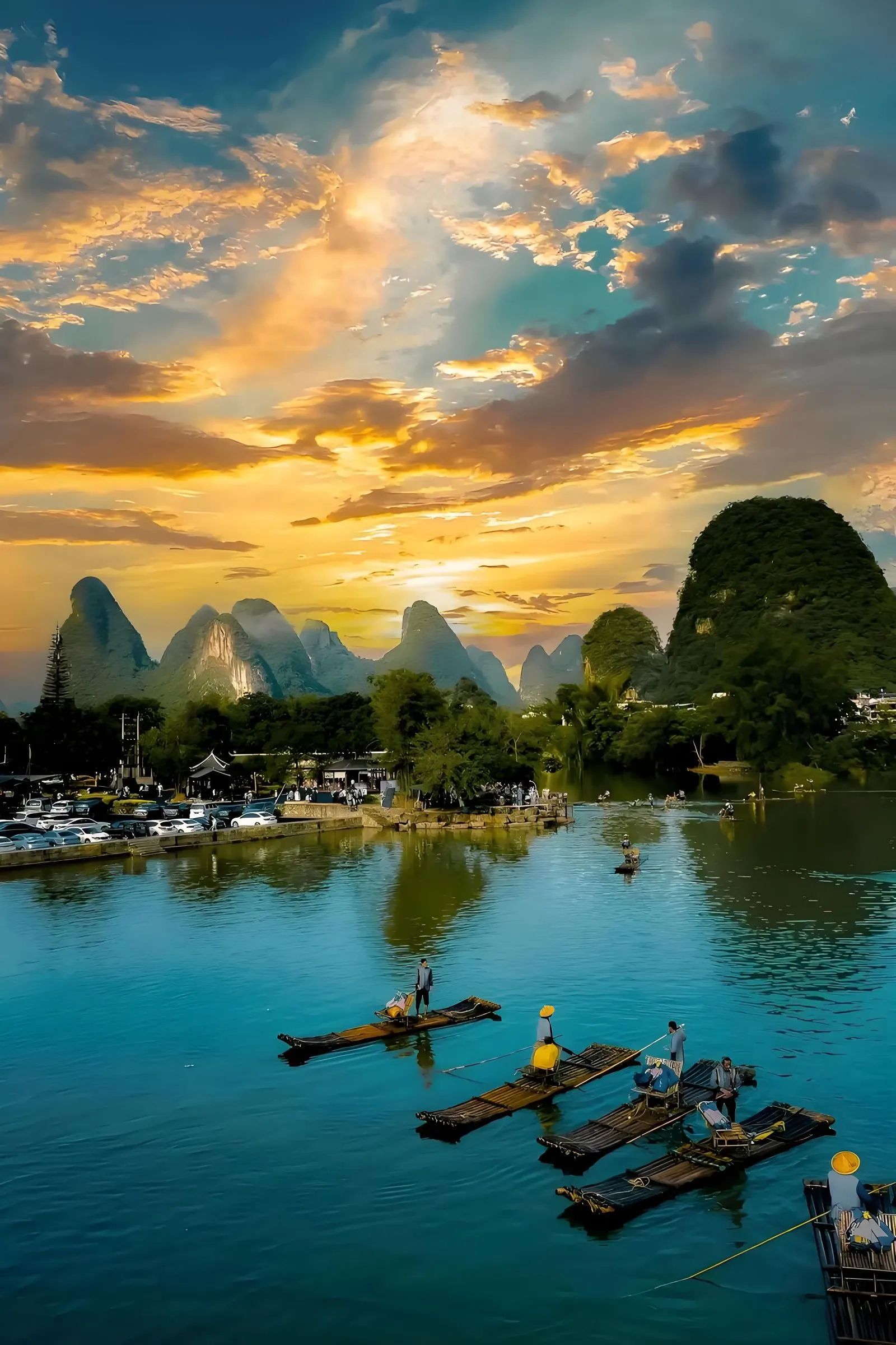- 漓江:桂林山水的代表,乘船或竹筏游览精华段(如杨堤-九马画山-兴坪)最佳,能欣赏到20元人民币背面的同款风景。
