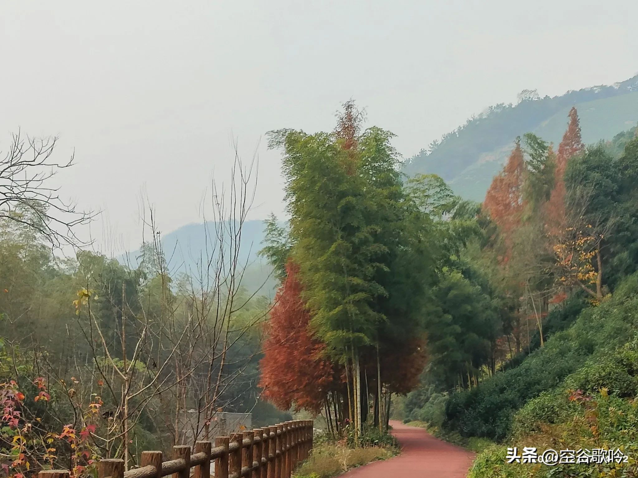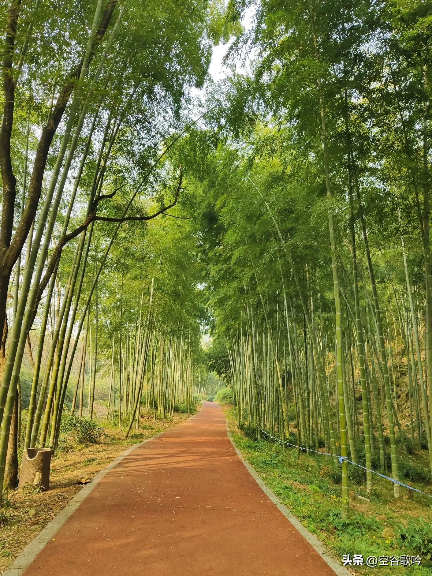 沿着红色的步道前行,前面大约5公里左右基本上都是平路,经过长寿泉、烧烤园,到达李庄驿站。