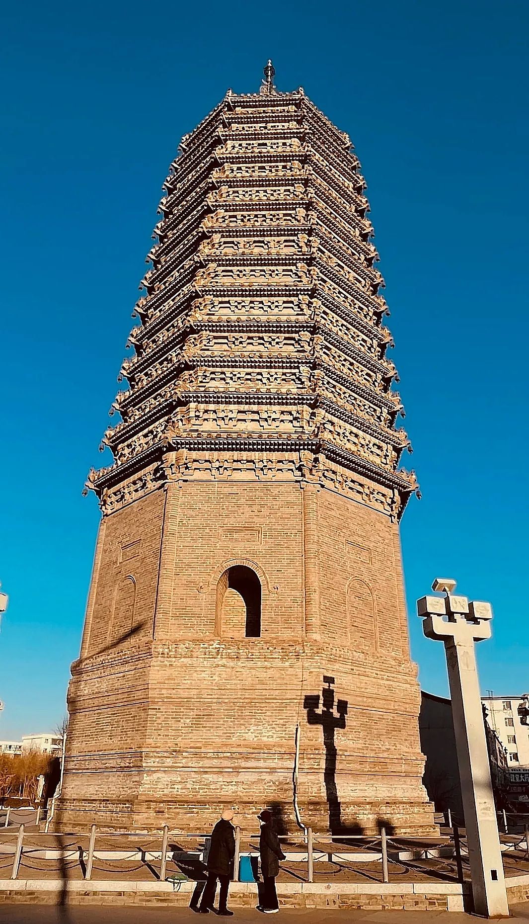 - 特色:这座辽代古塔已有近千年历史,是国家重点文物保护单位。八角十三层密檐式结构,44米高的塔身庄严古朴,风起时塔角铜铃轻响,别有一番韵味。