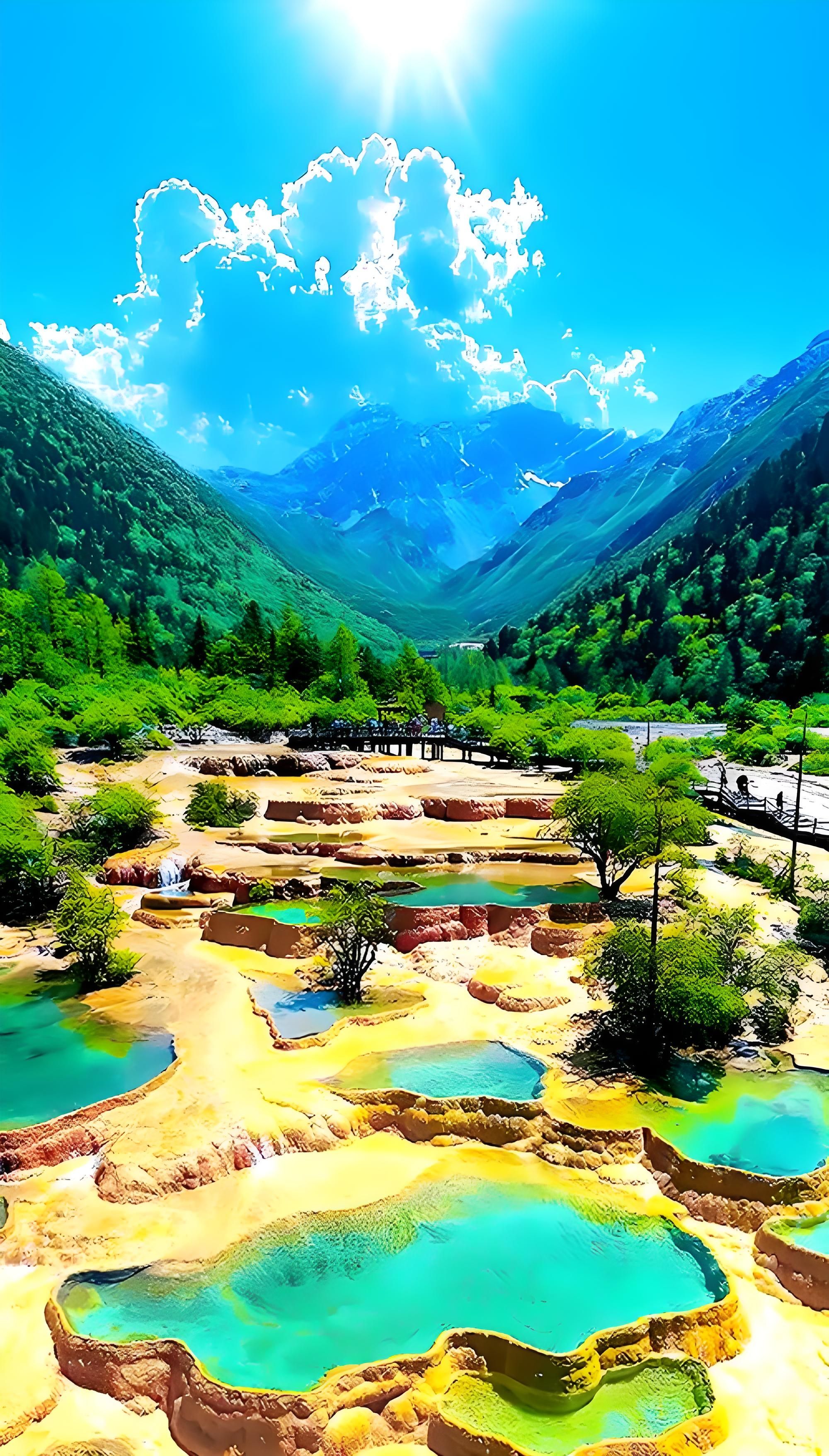 - 上午:从成都出发,若选择自驾,导航设置“黄龙国家级风景名胜区”,走“成灌高速-都汶高速-213国道”路线,车程约5小时,沿途欣赏岷江峡谷风光,途经汶川、茂县可稍作休息;若乘坐公共交通,可先从成都东站乘高铁到黄龙九寨站,再转乘景区直通车前往黄龙景区。