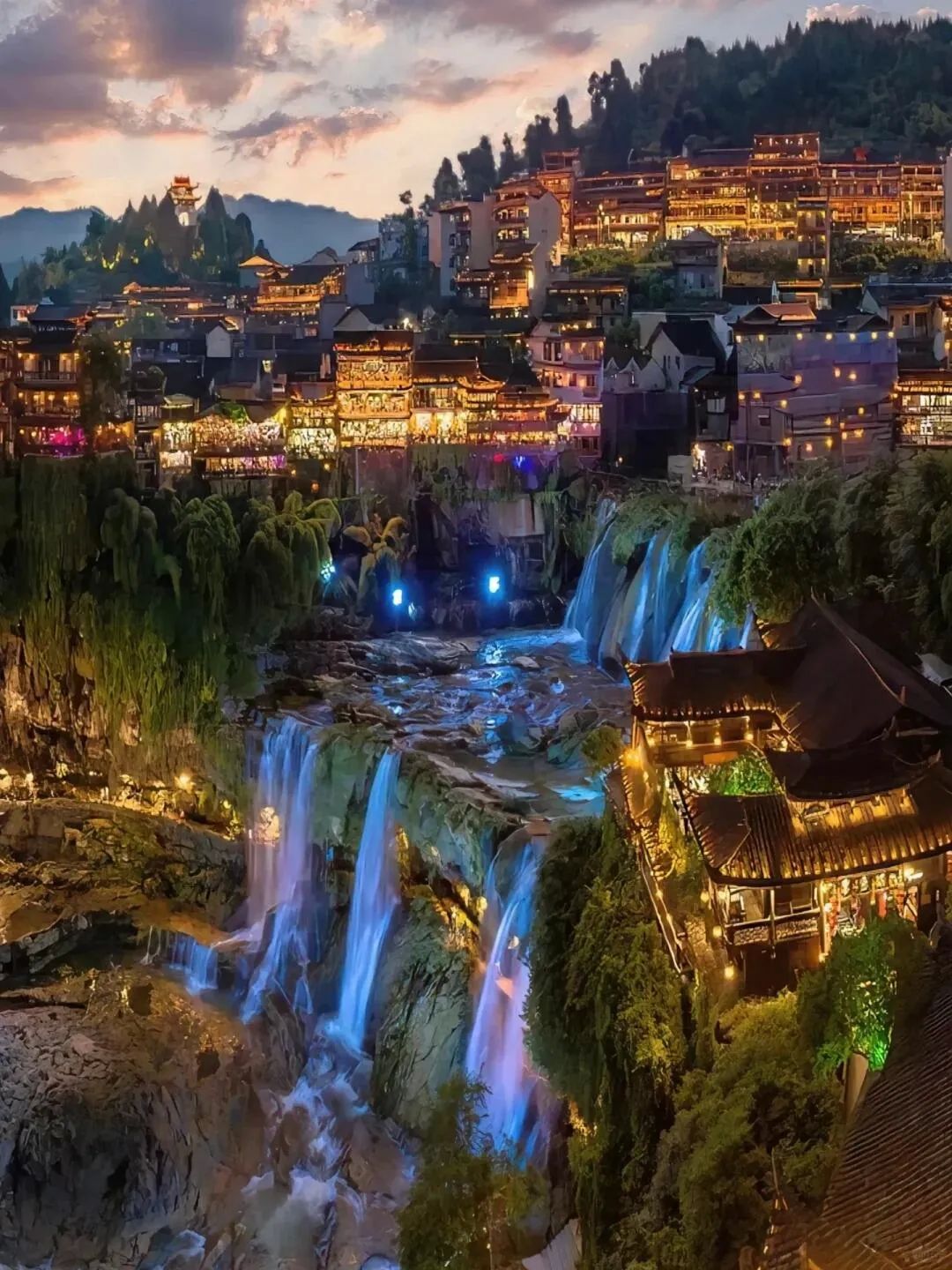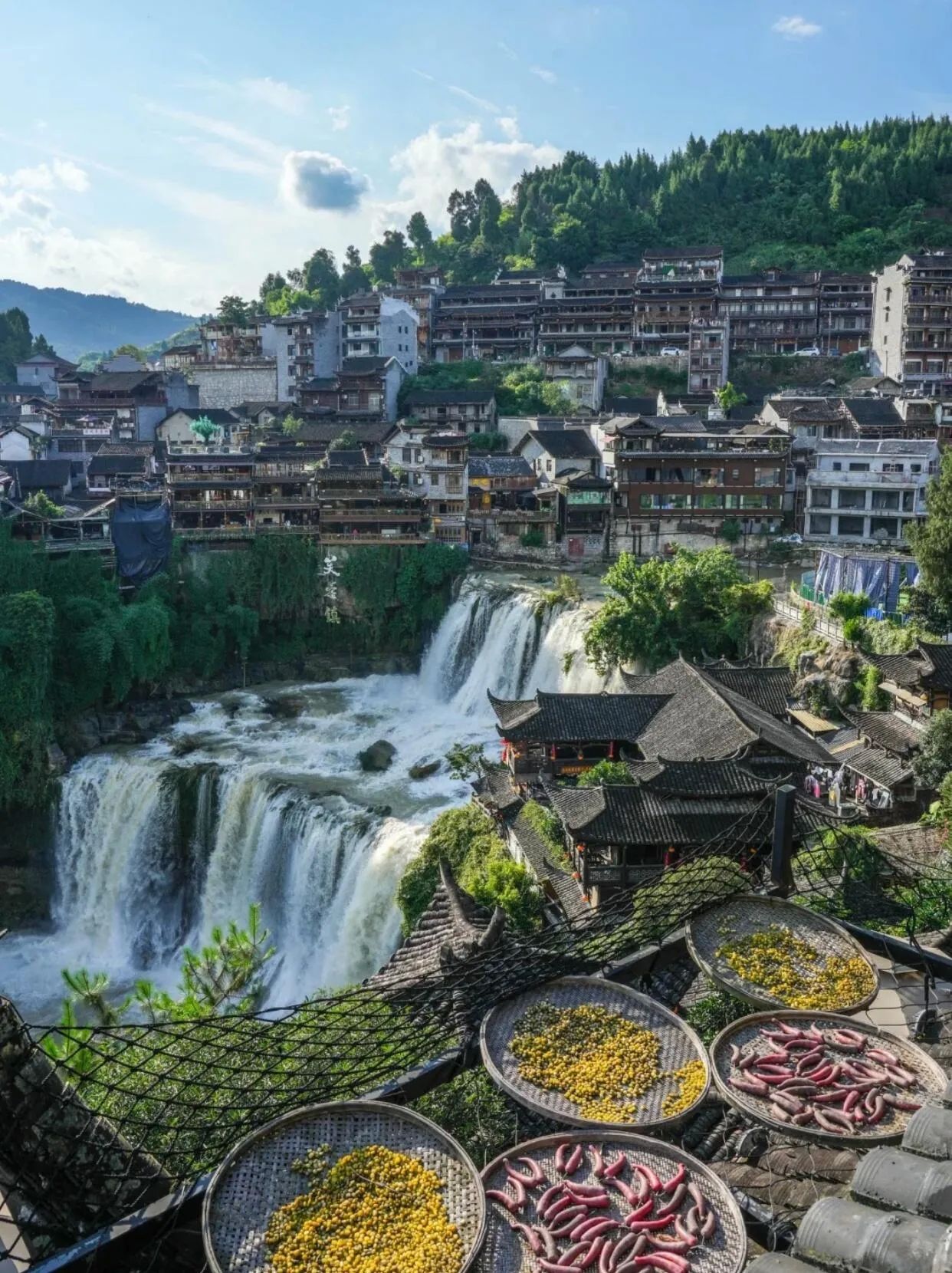 它被誉为“挂在瀑布上的千年古镇”,四周被宏伟瀑布环绕。楚蜀通津、酉阳雄镇,还顶着湘西“四大名镇”“小南京”等诸多美誉,历史底蕴与绝美风光完美融合。
