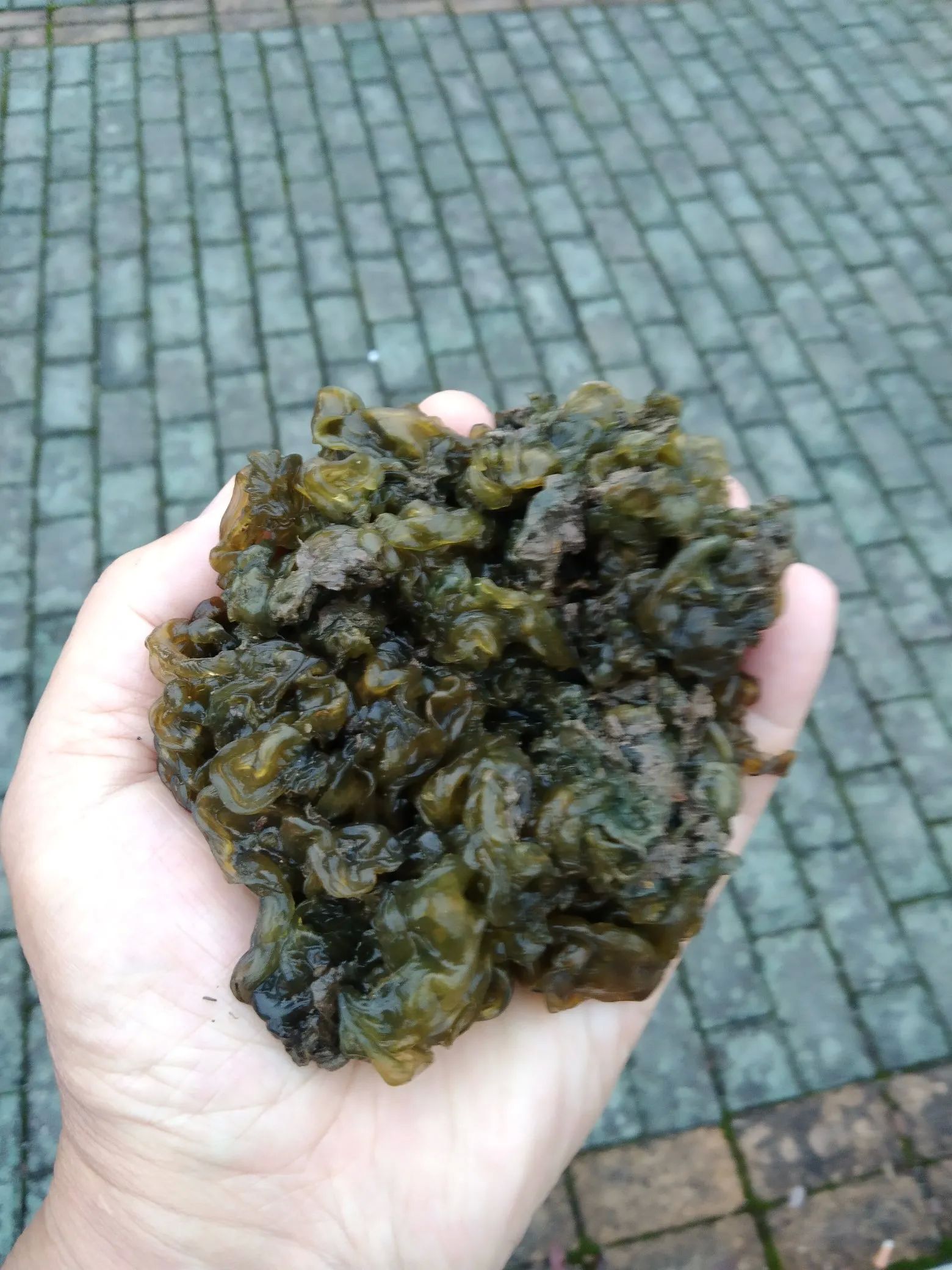 早上醒来,天居然没下雨,空旷的服务区里就我们三辆车共五个人,呼吸着雨后清新的空气,在停车场里跑了几圈,感觉着心旷神怡,十分舒服。在服务区边的桥墩上,还发现了地皮(也有叫地衣的,一种菌类),拾了一把,清洗后做了一锅地皮蛋花汤,美美的喝了一顿。吃完饭,洗完衣服,快十点了才恋恋不舍的离开服务区。