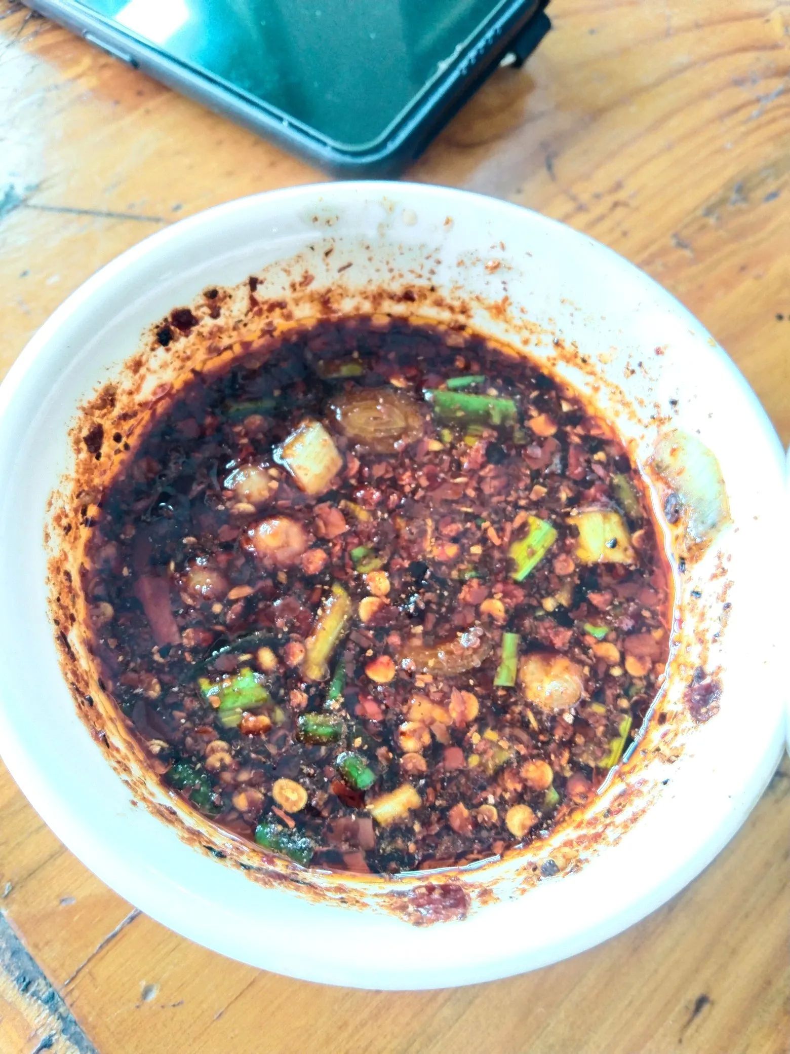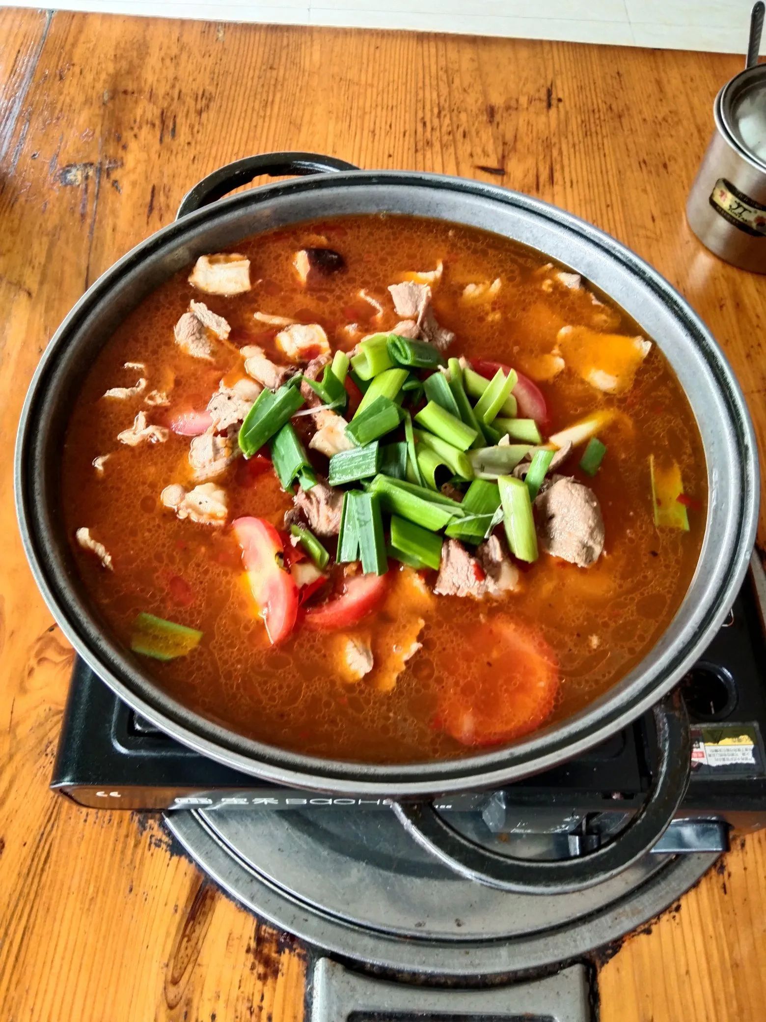 中午在一家叫泡糟酒家的饭馆吃了火锅,过去在电视上看过,贵州有这种火锅店,店里有生肉和各种青菜,食客在店里买了肉和菜,店主把肉炒了,加上汤,再煮上买的青菜,丰俭由人,便宜实惠。今天也体验了一下,但店里不卖肉和菜,而是多少钱一位。我们点的猪肉火锅,每人二十元,店家给炒好肉,用豆芽、土豆片、豆腐垫底,放到卡式炉上,再给一盘青菜,随吃随煮,沾着糊辣椒面加了蒜苗调成的蘸水,巴适得板!店家还给了一小桶米饭,算账时只收了火锅的四十块钱,米饭是免费的。