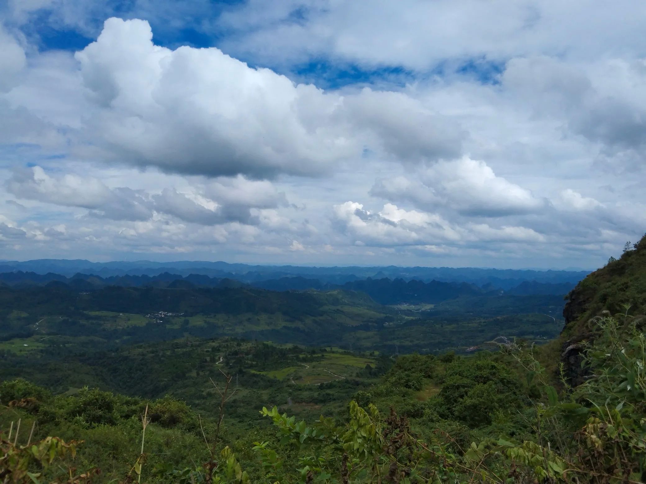 在高速上跑了几十公里,看着天气很好,就找了个路口下去,想体验一下贵州的县道如何。没想到路况很好,彻底改变了以前对贵州的想象。路上有好几处观景台,驻车远望,水墨画般的山峦尽收眼底,美不胜收,这是在高速上无法办到的。