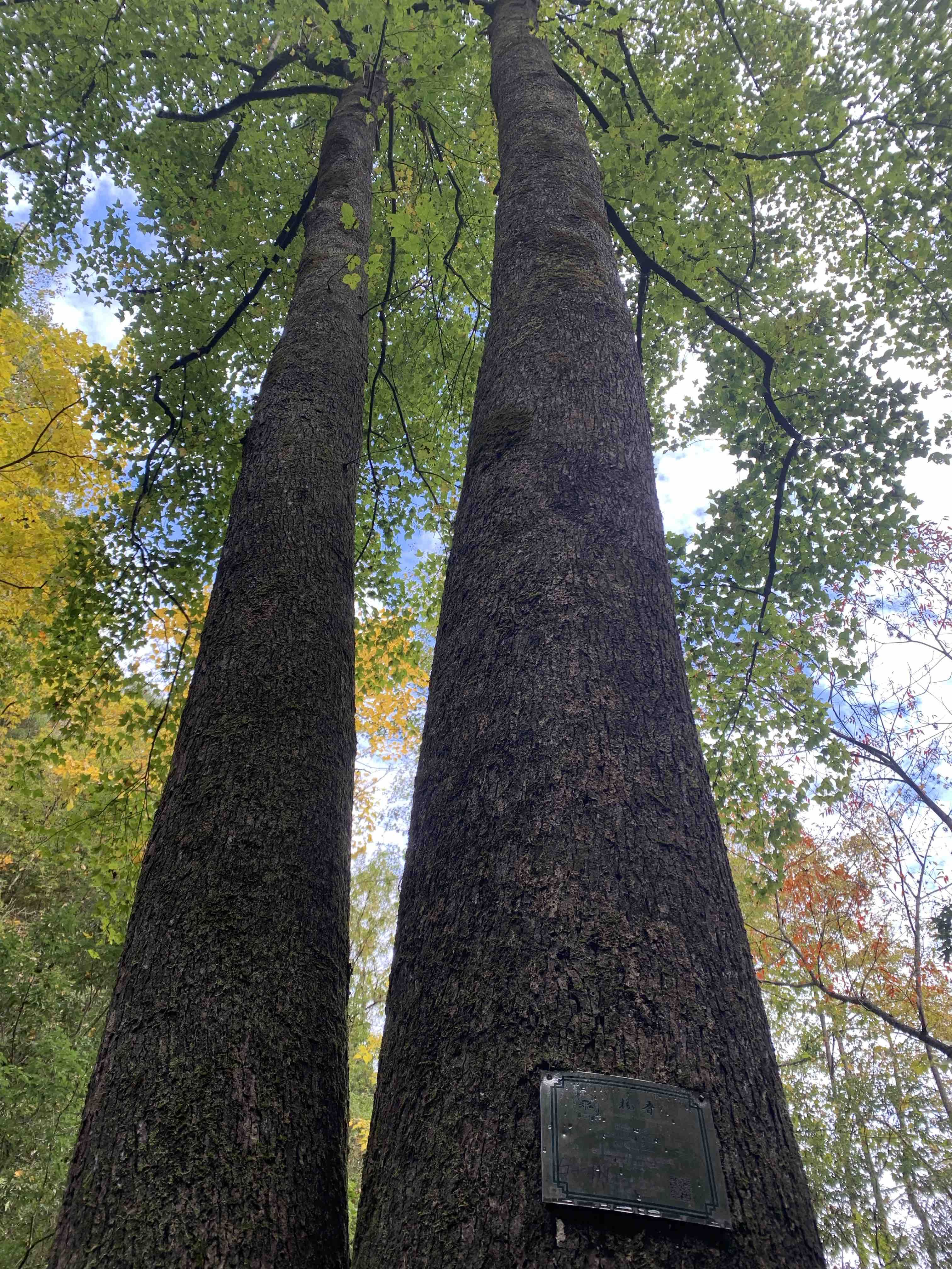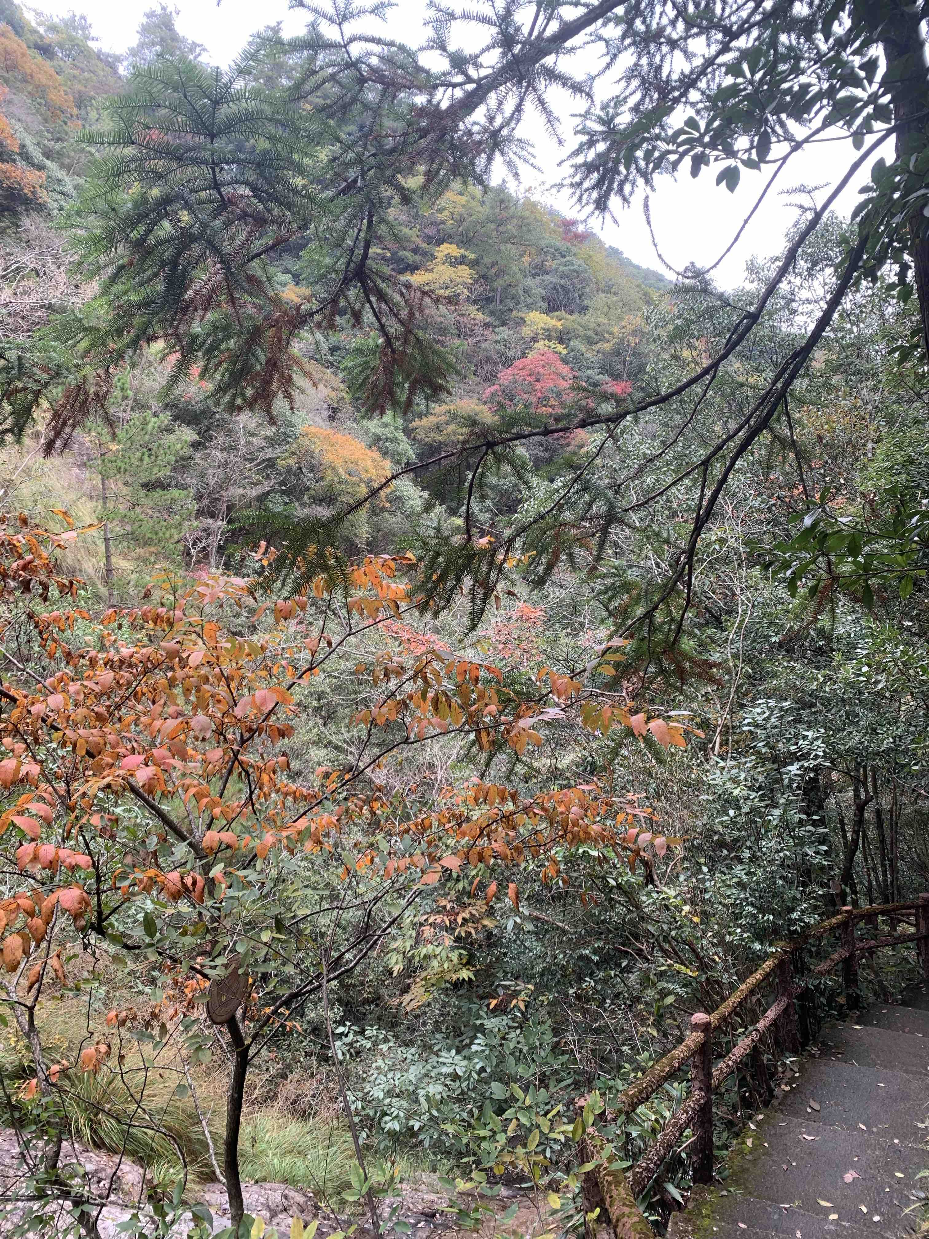 追随着溪流,欣赏着山间斑驳的树叶,时而露出几片蓝色的天空,时而筛下道道阳光。缓步上行,不知不觉间就到了百姓云梯,边走边找自己的姓氏,给爬坡增添了几分乐趣。