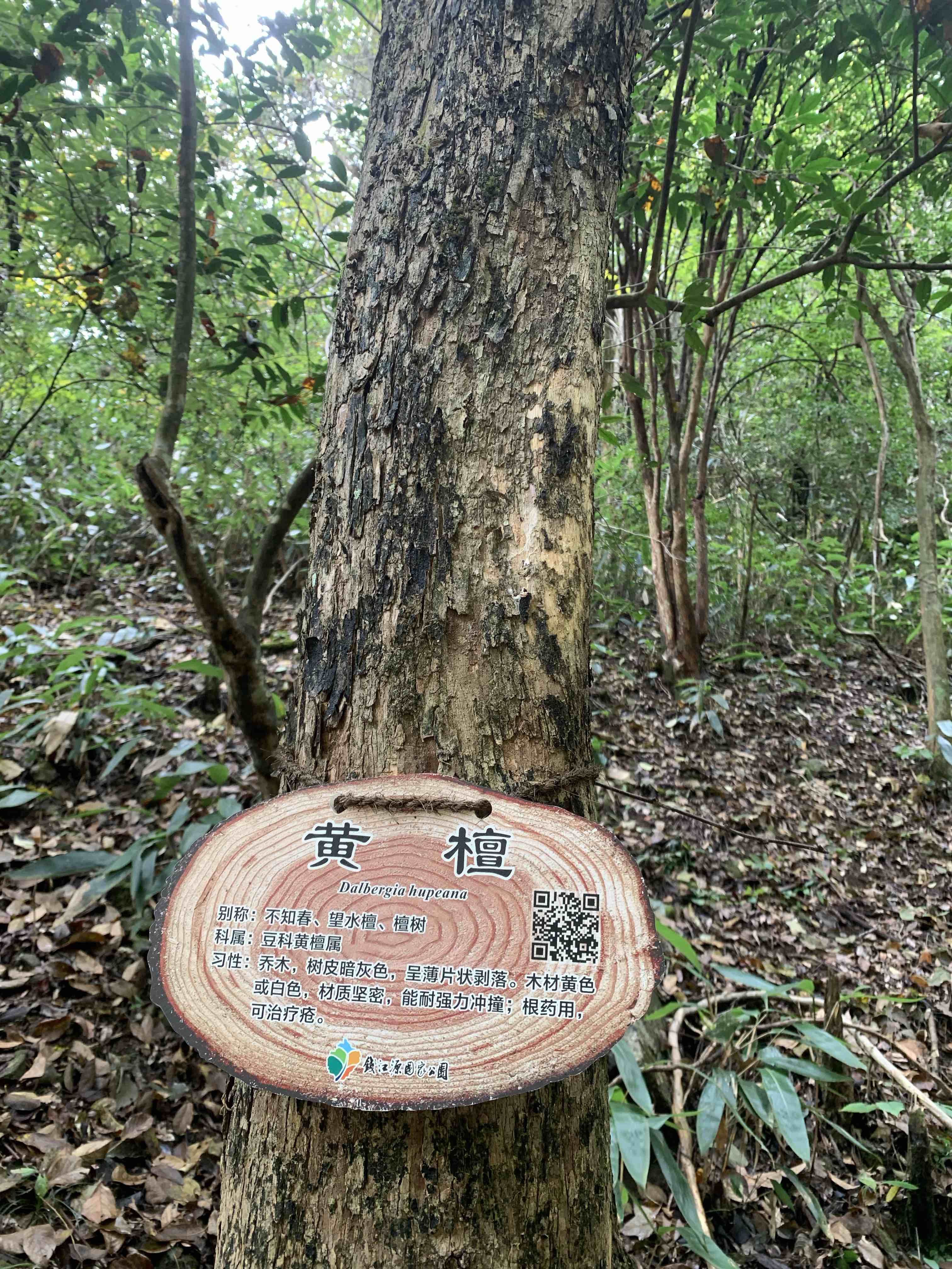 路边的大树小树甚至灌木许多都挂了牌,标明了名称、科属及习性,山路边不远就有一个介绍牌,介绍公园内的动植物,特别适合小朋友们边玩边学。